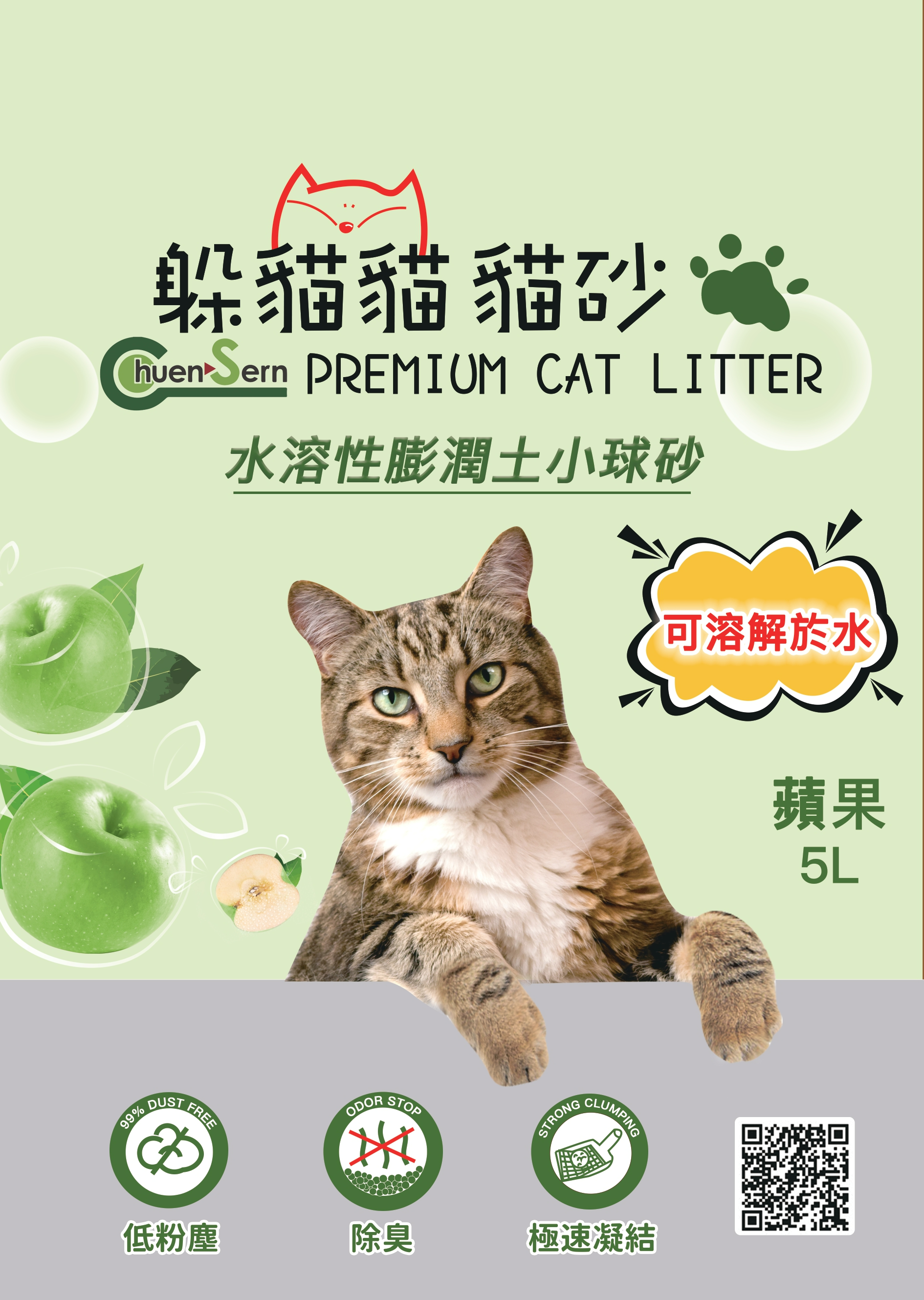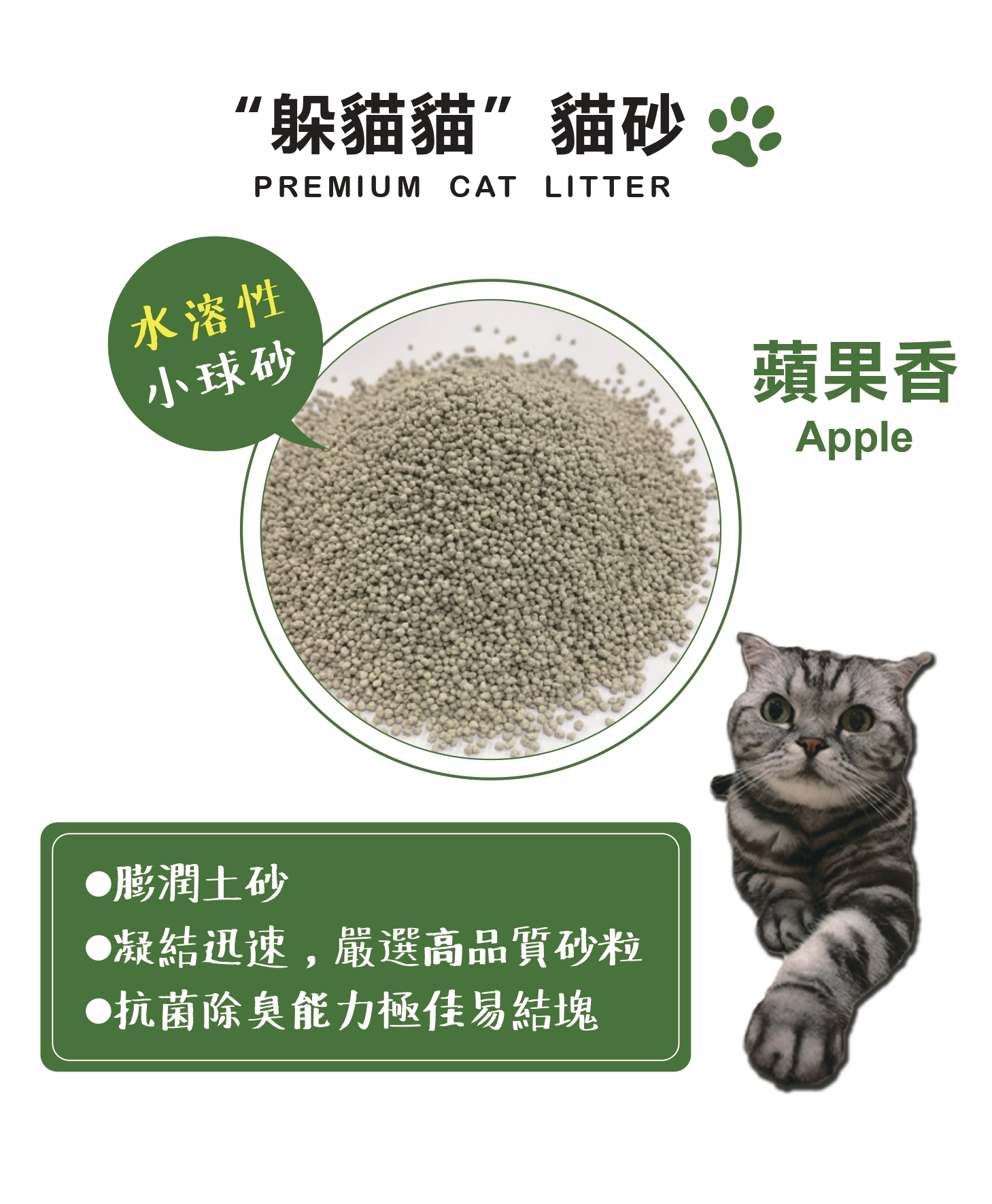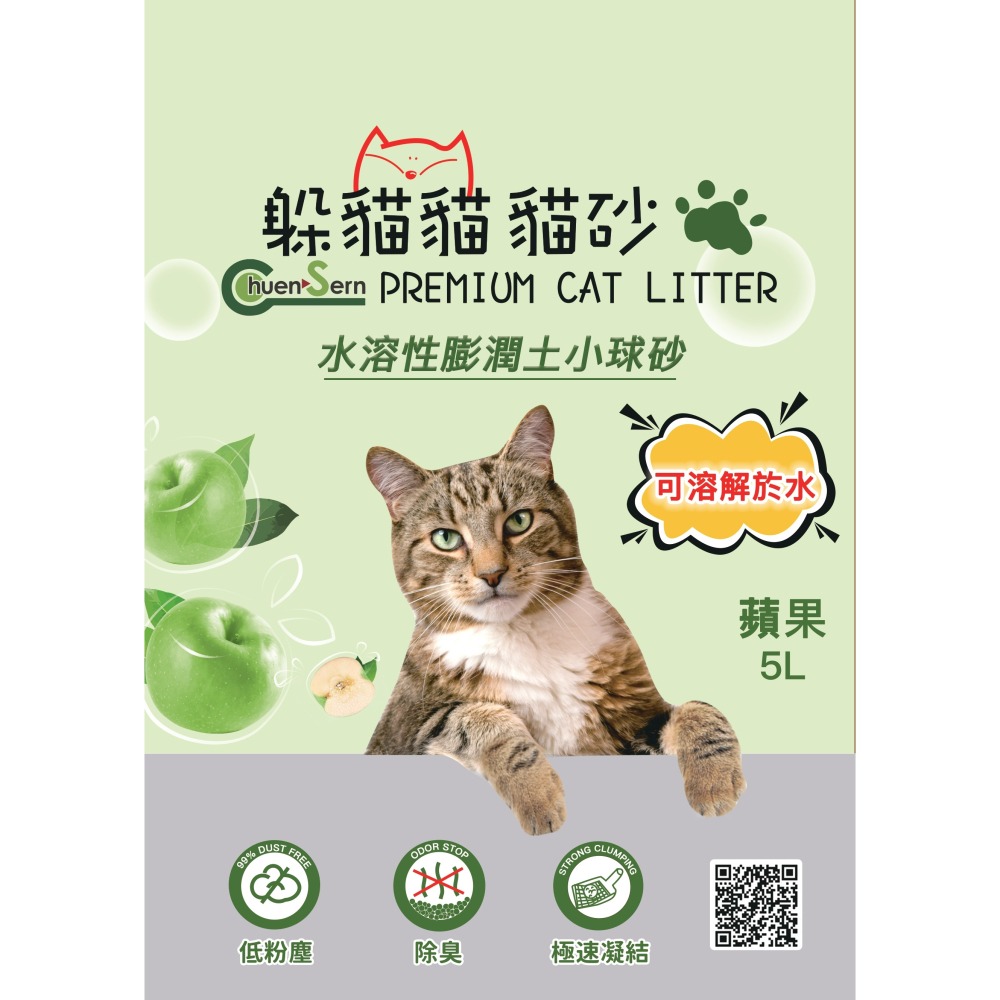 【宅配/超取賣場】【躲貓貓】水溶性膨潤土小球砂貓砂5L(4kg)/包-蘋果香