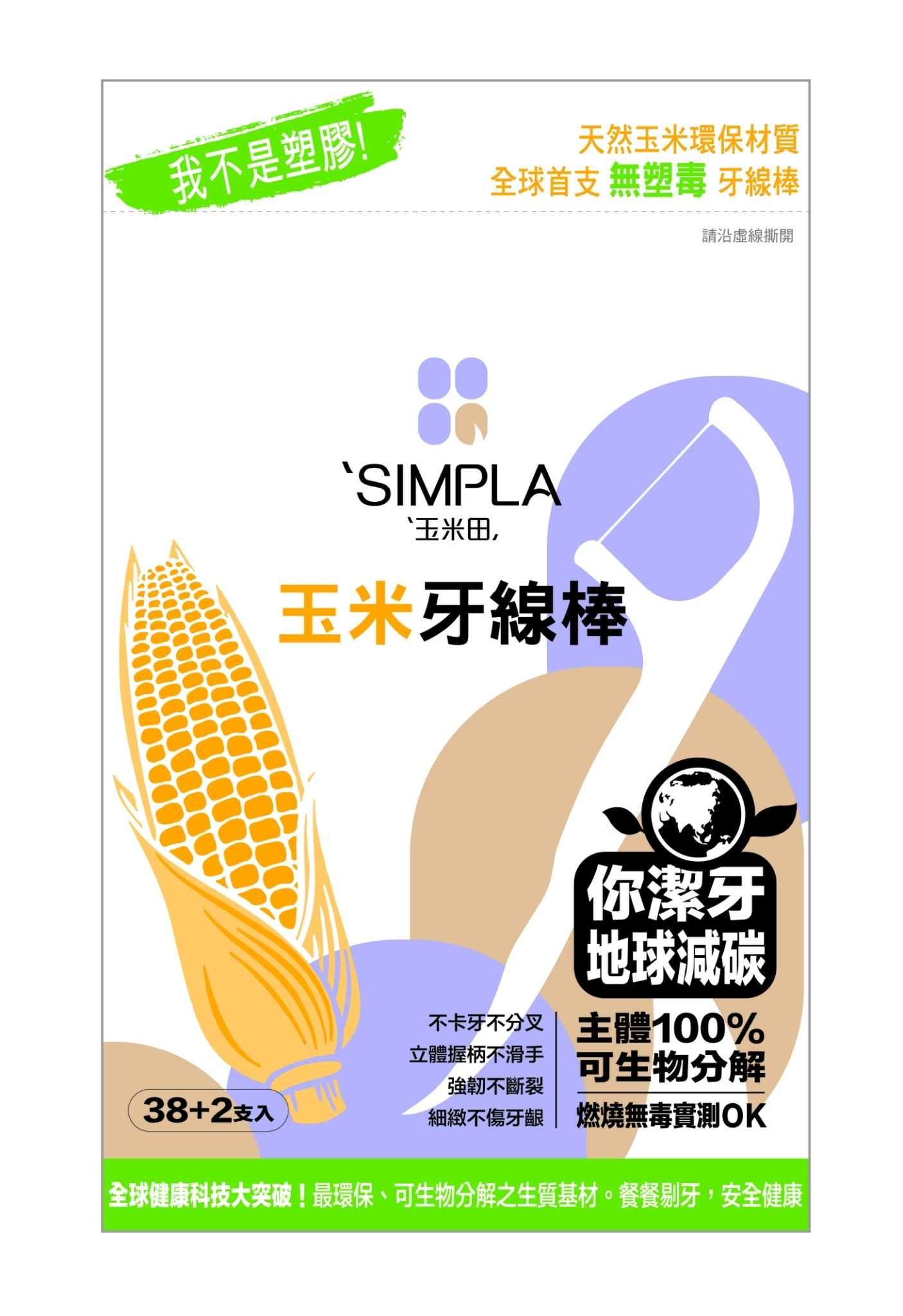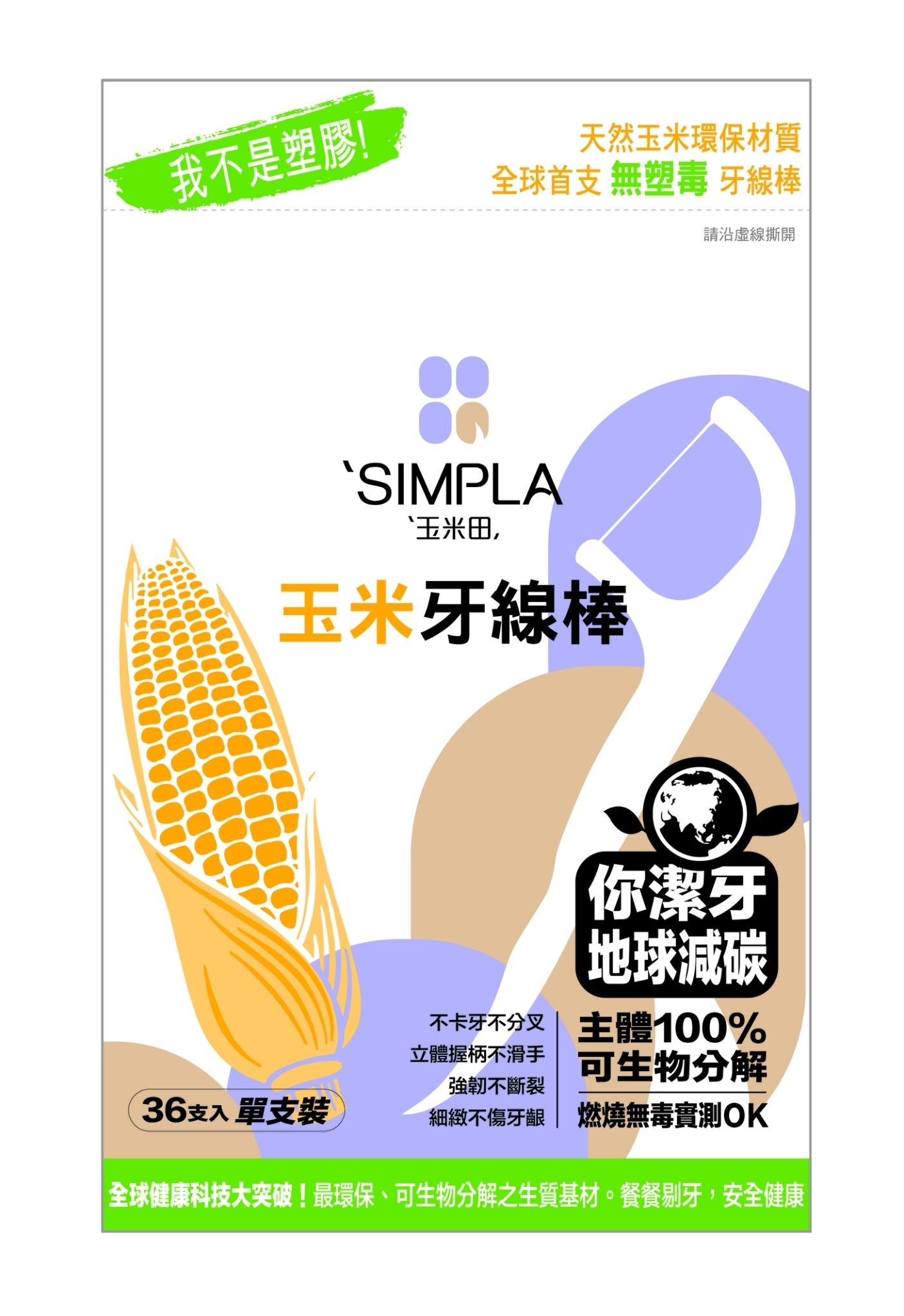 • 天然聚乳酸 PLA玉米生質材料製成,不污染環境。