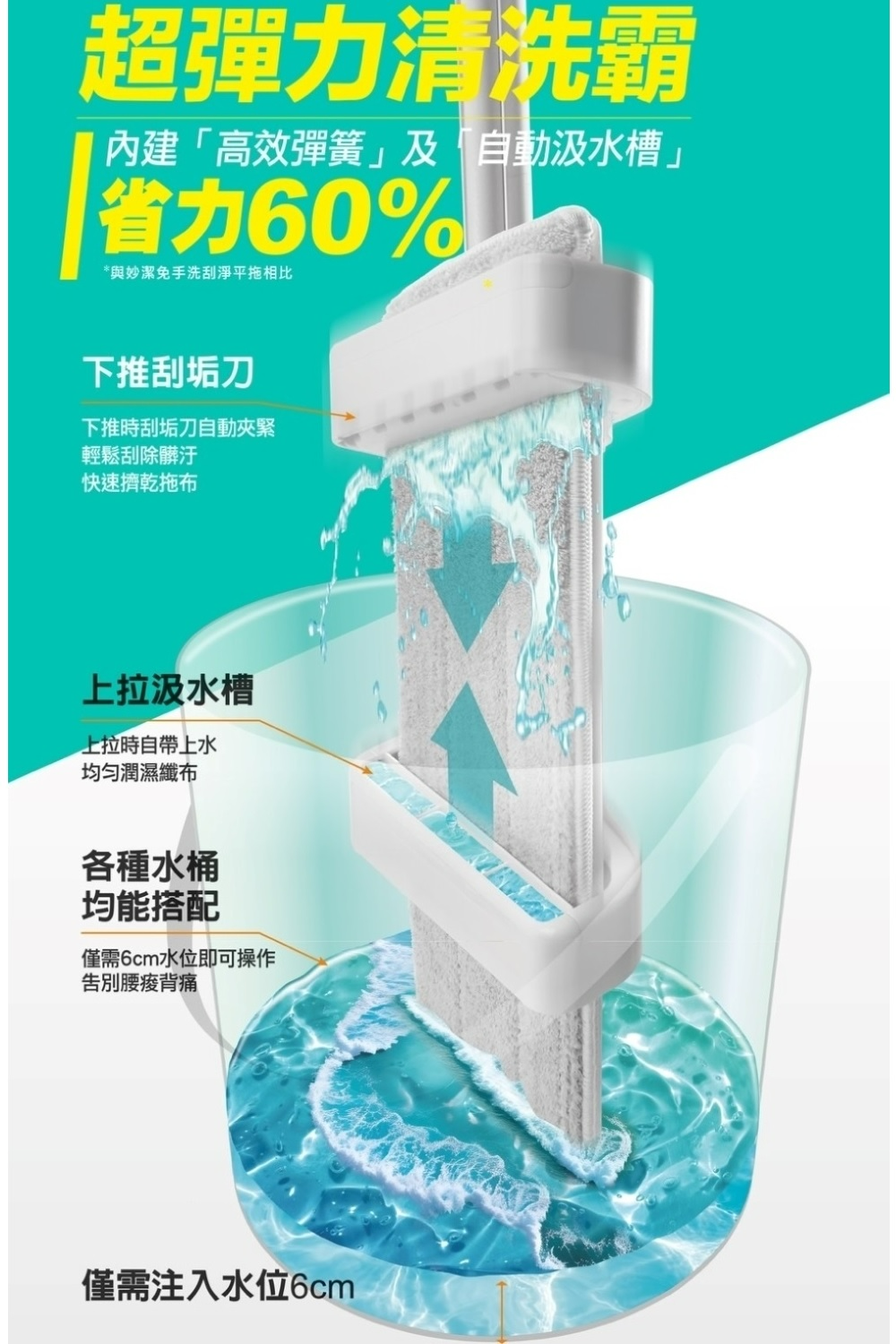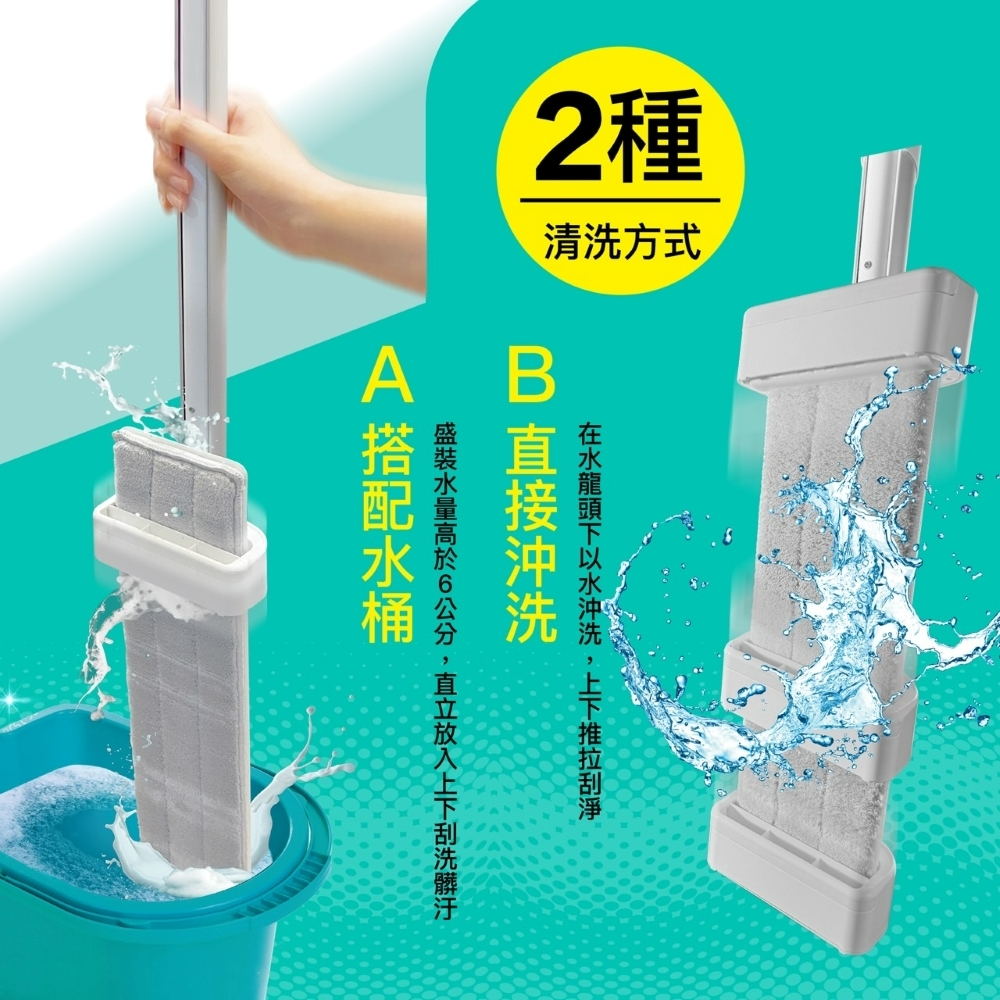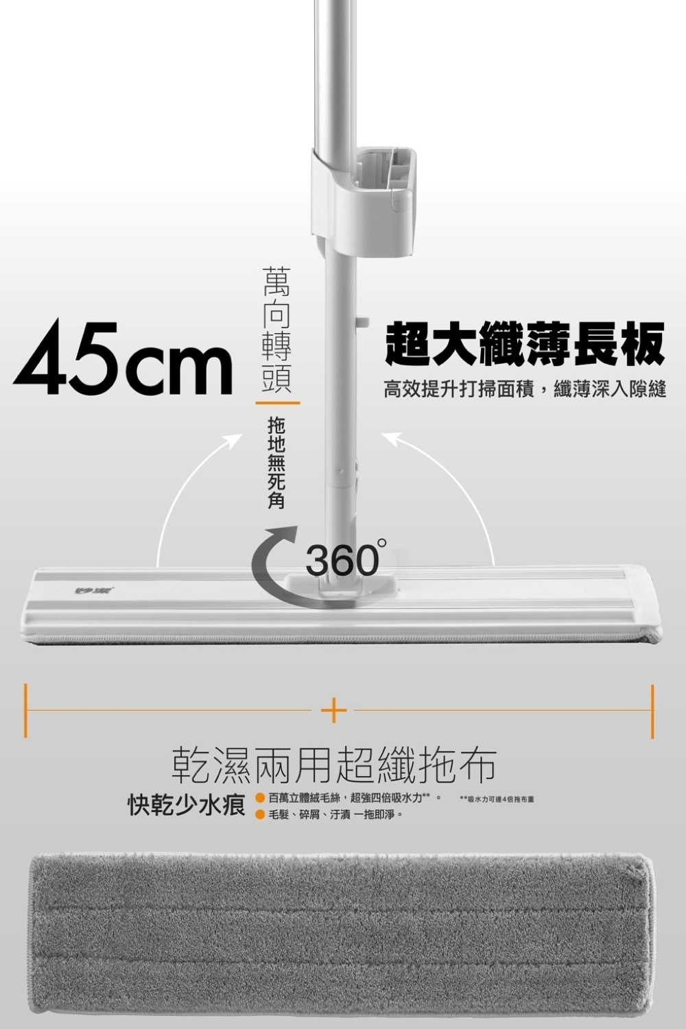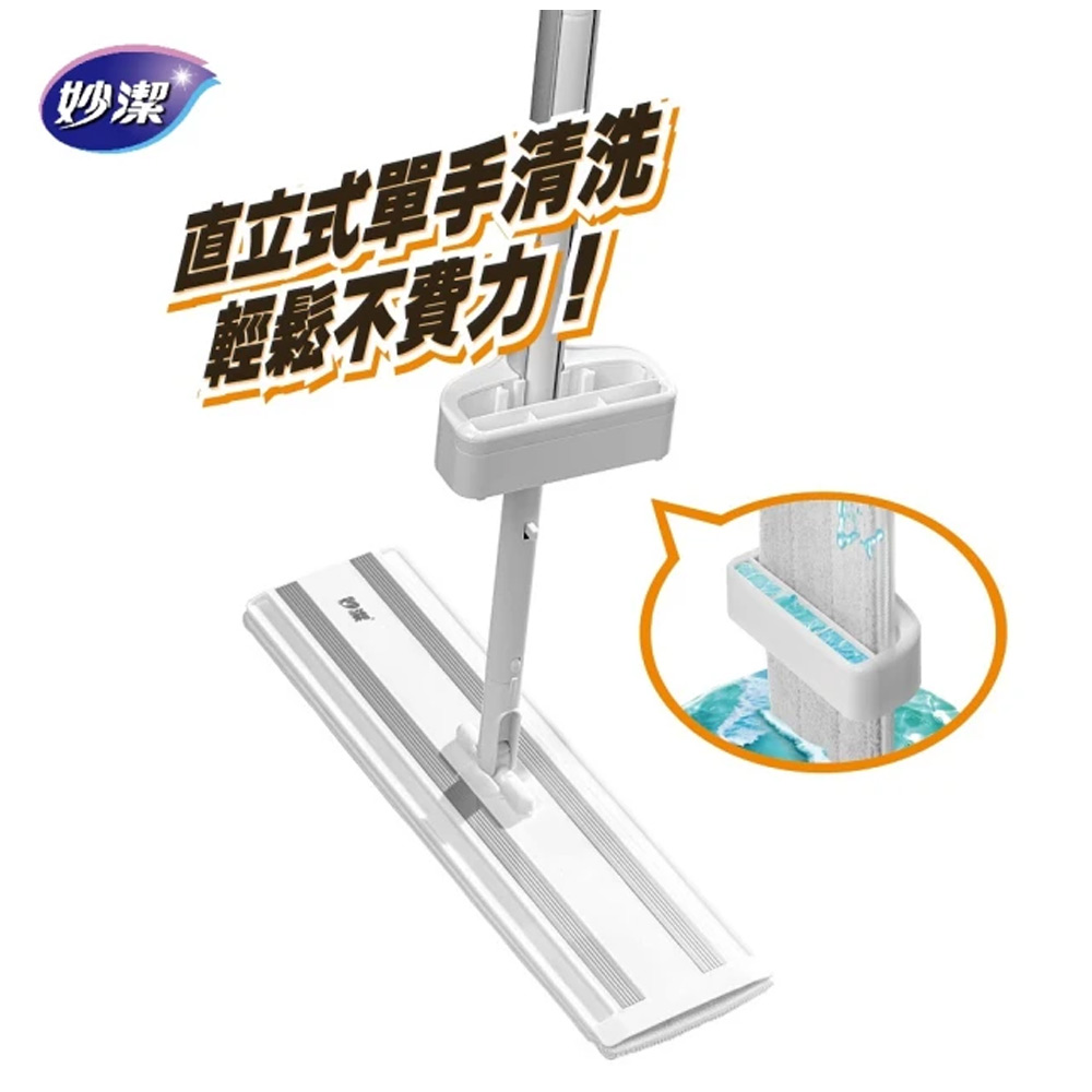 【宅配賣場】【妙潔】大魔淨免手洗刮淨平拖 單手洗脫 45cm超大纖薄長板(共1桿2布)