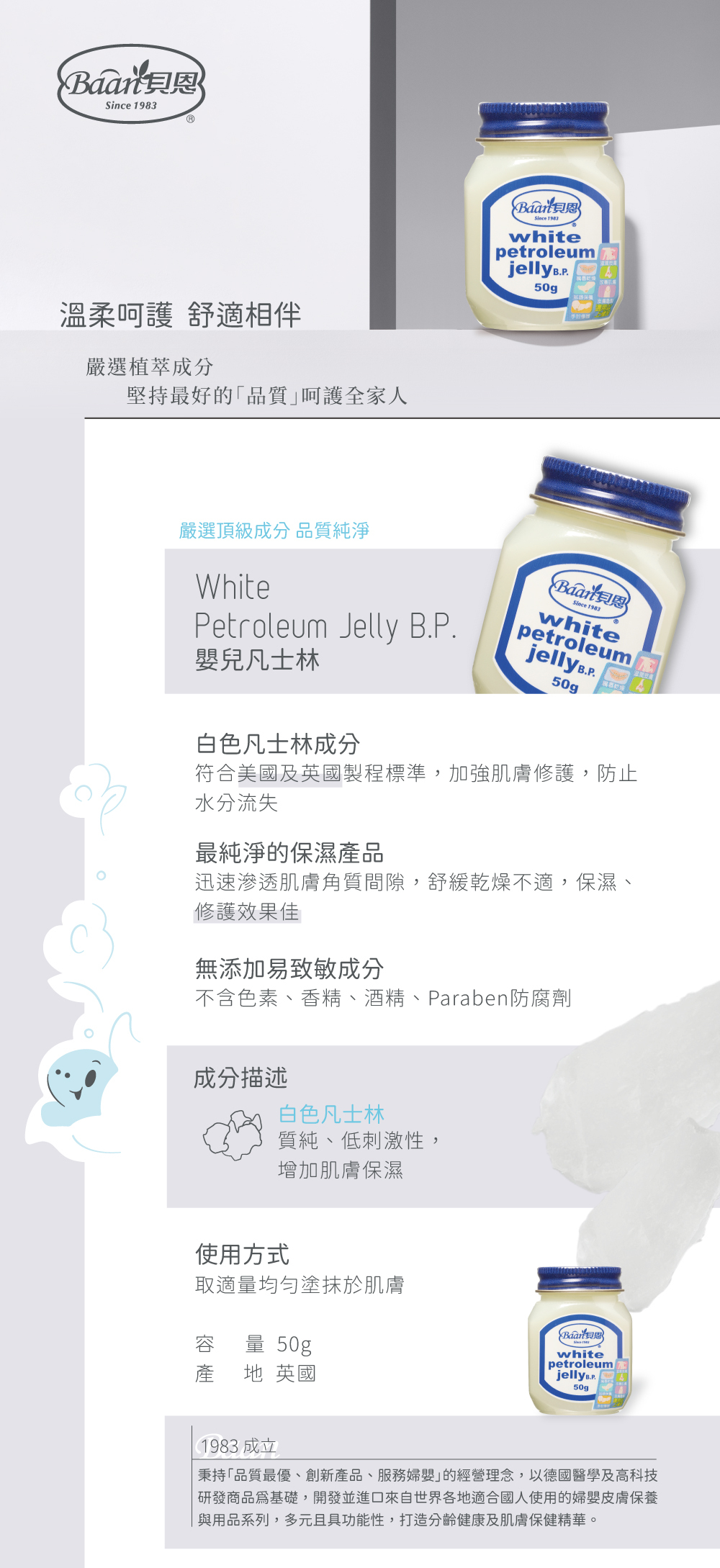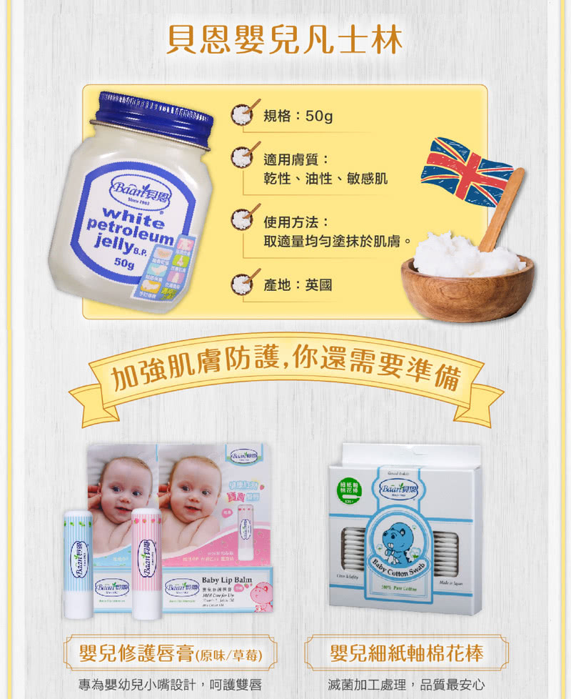 【宅配/超取賣場】Baan 貝恩 嬰兒凡士林 50g x 3入(保濕系列)
