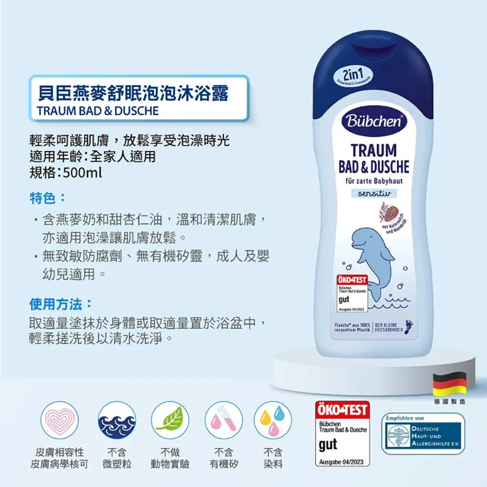 【宅配/超取賣場】Bubchen 貝臣 燕麥舒眠泡泡沐浴露500ml x 3入
