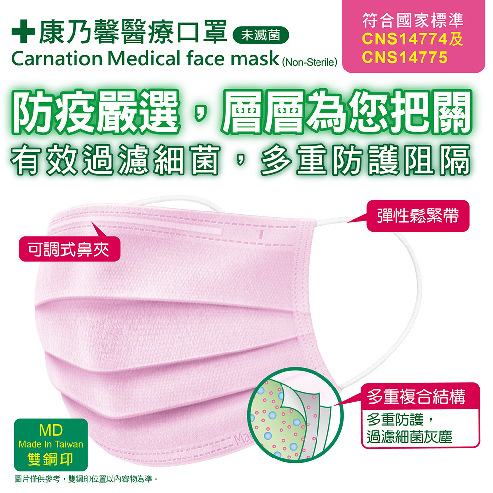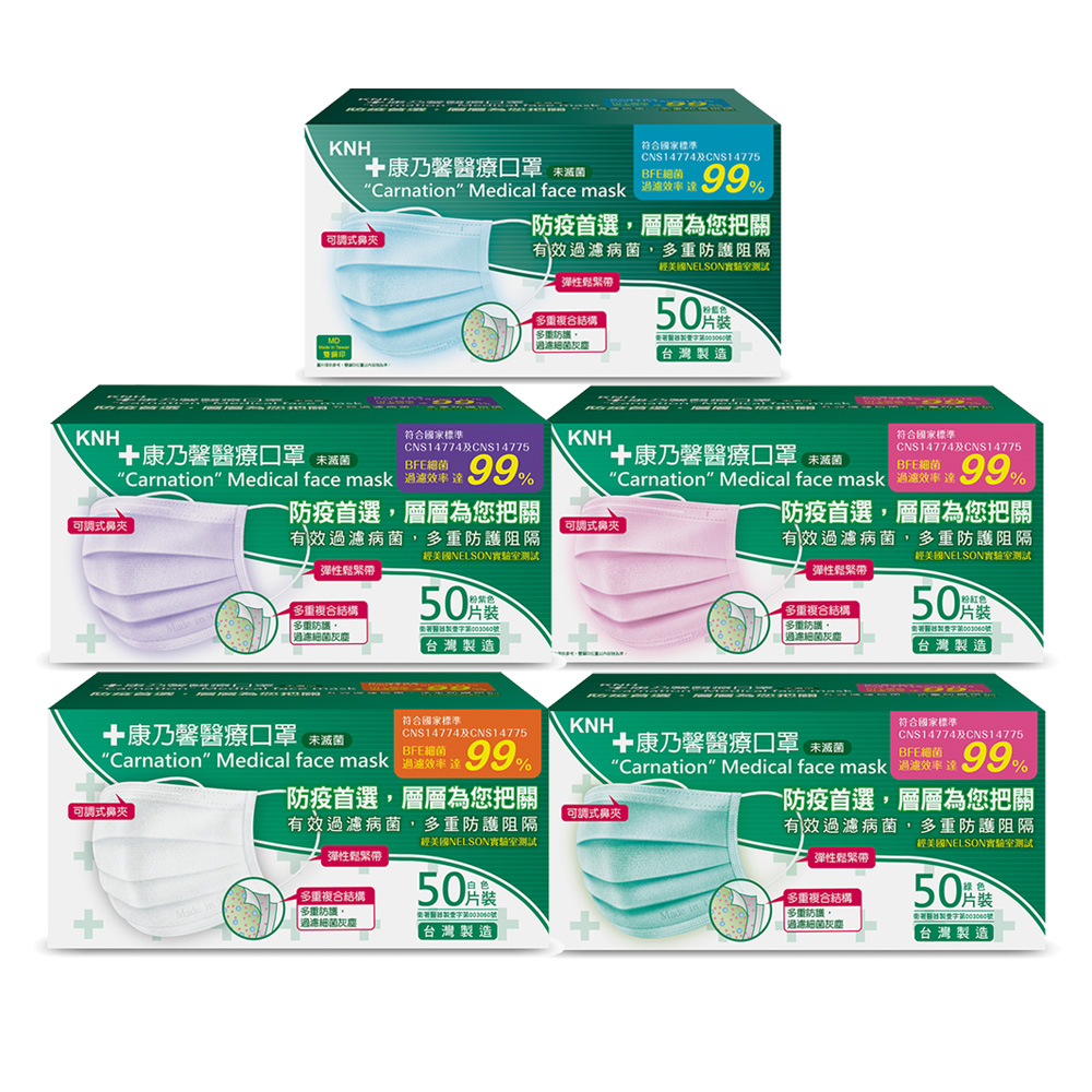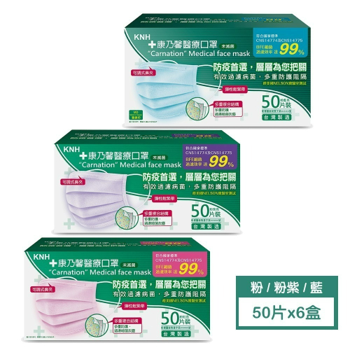 宅配賣場 KNH 康乃馨 醫療口罩50片x6盒 共300片 台灣製/未滅菌/一般耳帶有效過濾(粉紅/藍 款式任選)