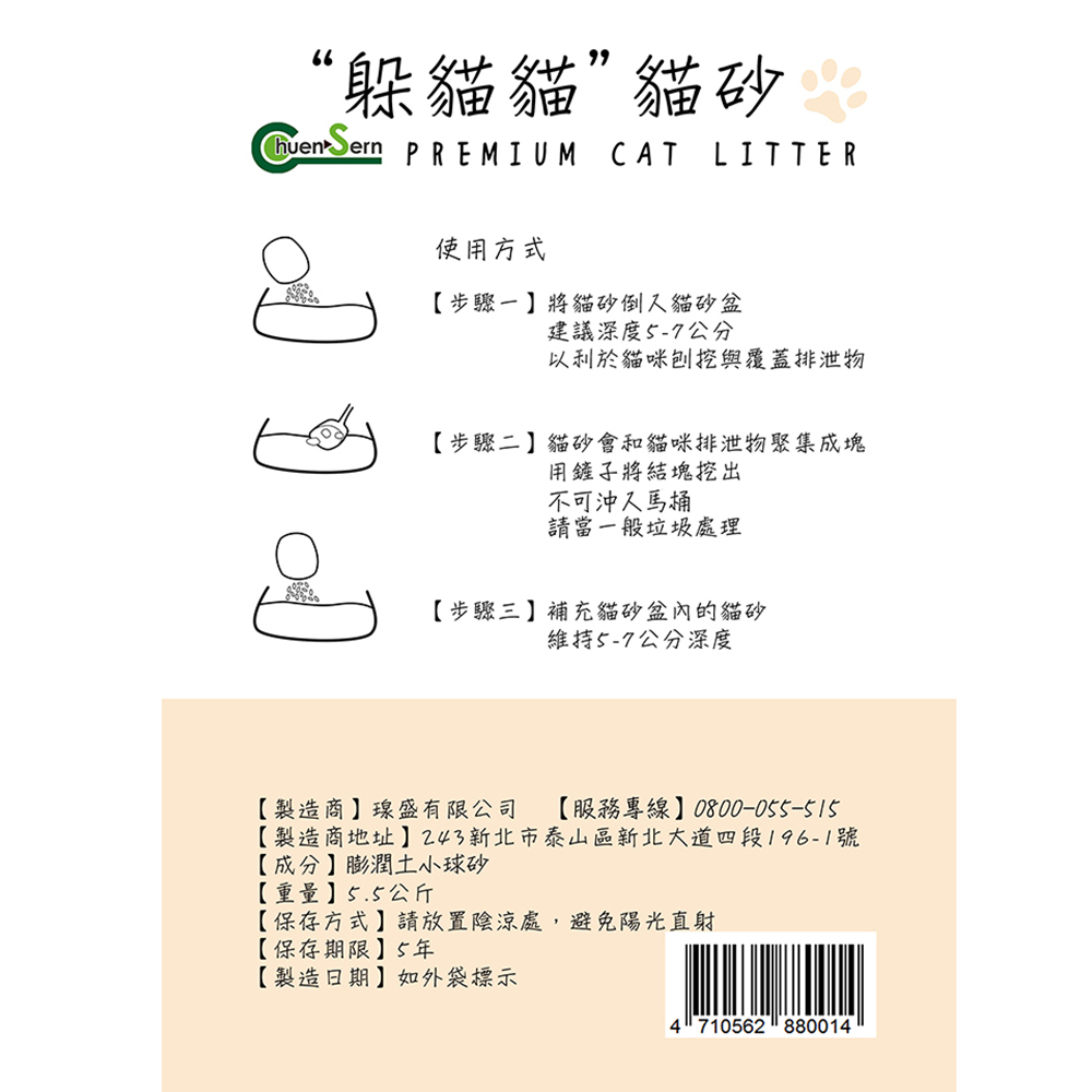 【宅配賣場】躲貓貓 膨潤土小球砂 5.5kg /包