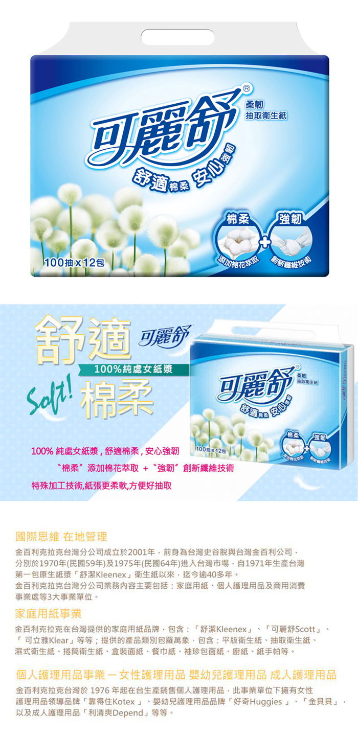 【宅配賣場】可麗舒 柔韌/除臭 抽取衛生紙 100抽x72包/箱