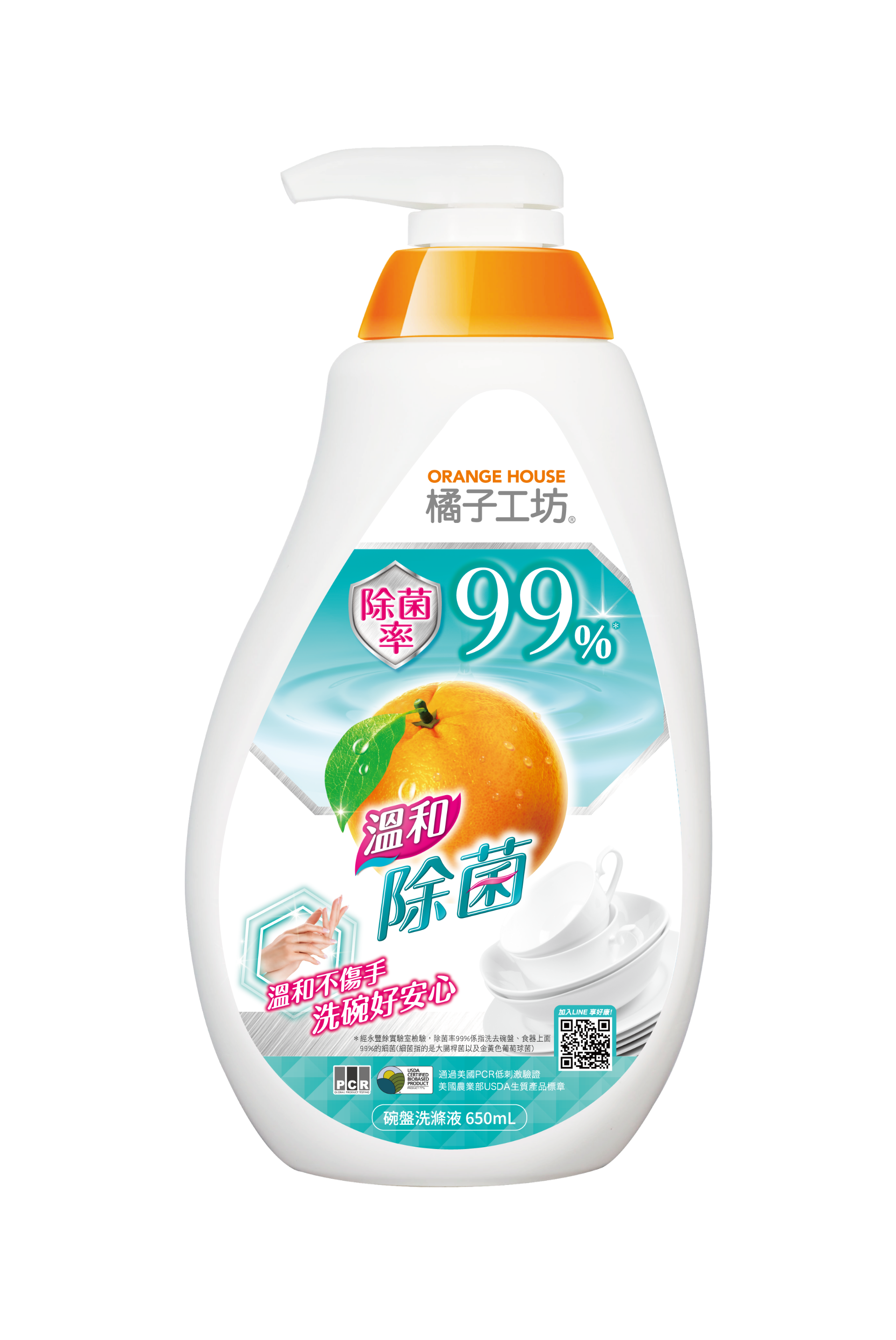 *橘子工坊 碗盤洗碗精650ml-溫和除菌,效期至2026/02/01