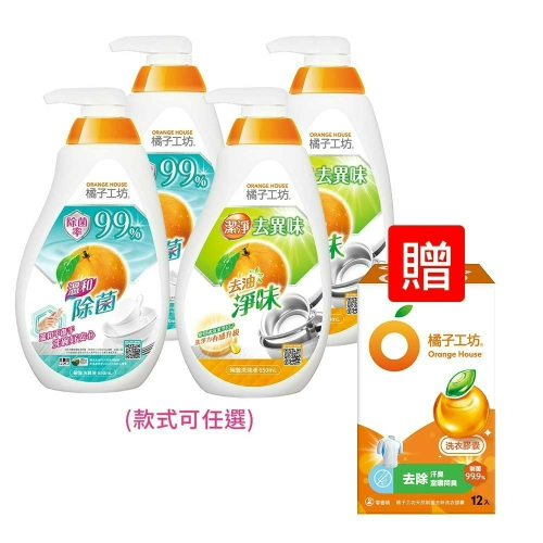 【超取/宅配賣場】橘子工坊 碗盤洗碗精650mlx4瓶(溫和除菌或去油淨味)獨家再贈制菌去味洗衣球12顆