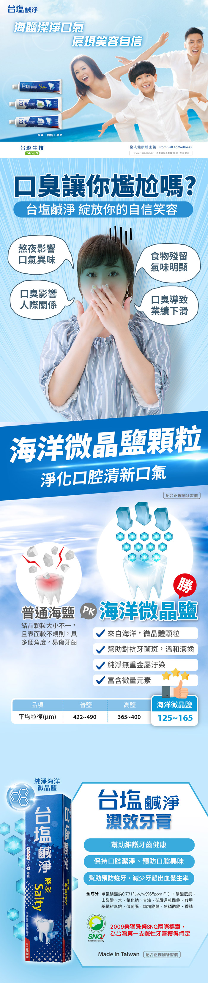 【超商取貨賣場】台鹽生技 鹹淨晶亮/固齒/潔效牙膏(150g/條)