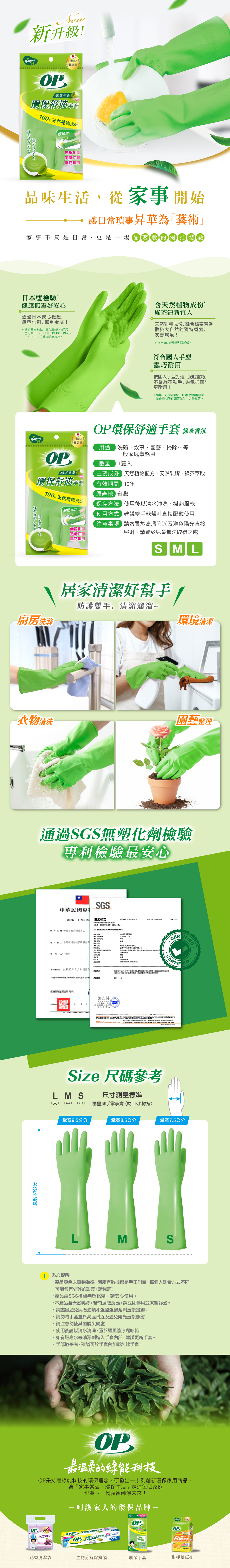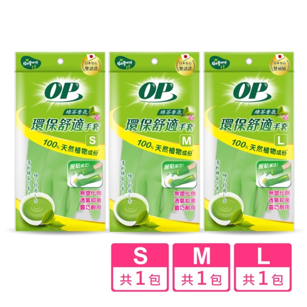 【超取專用賣場】OP 環保舒適手套 綠茶香氛(S/M/L 1雙)