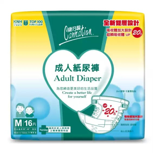 【超商取貨賣場】康乃馨 黏貼式 成人紙尿褲 M號16片/包 (一般型)