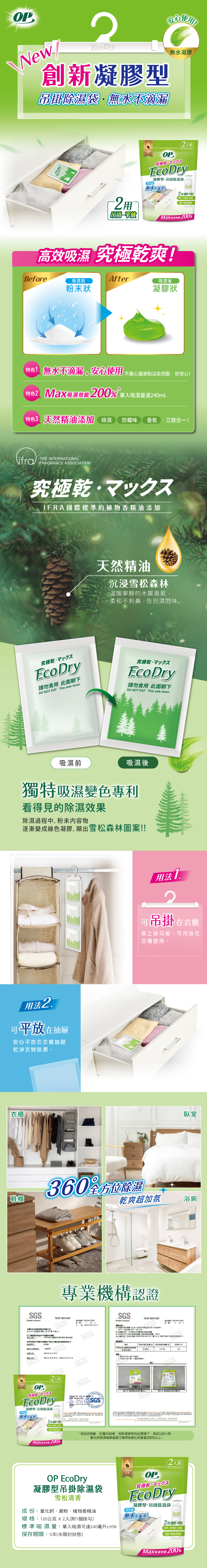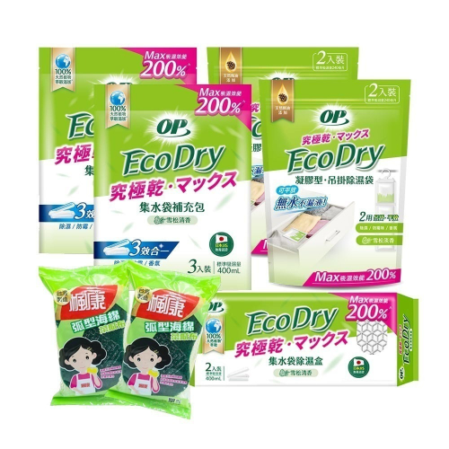 贈2包菜瓜布 OP Ecodry集水袋除濕盒400ml(組合1盒2補)+吊掛式除溼袋2包