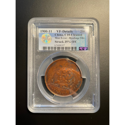 大清銅幣 20文 變體銅幣 移位+陰打 雙重變體 ACCA評級 VFC10 (稀少特別