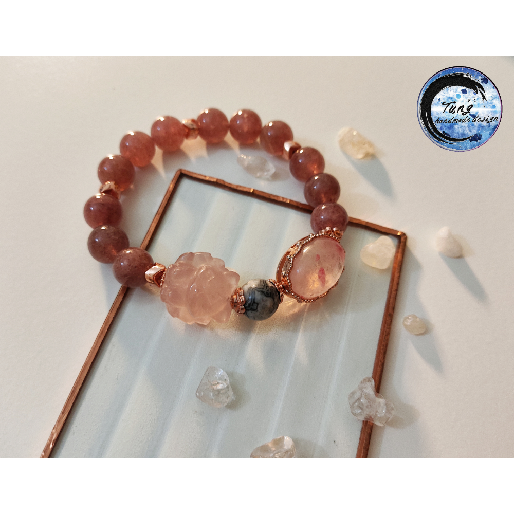 ❤️ 粉晶九尾狐+櫻花雨+草莓晶+龍宮舍利 ❤️ 手鏈設計款new🎉 大咪水晶珠款🤗