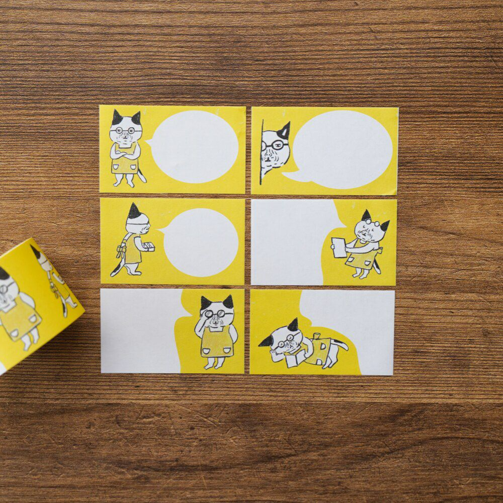 柴田惠子繪本《眼鏡貓》中出現的貓咪眼鏡專賣店老闆,如今以便利貼的形式呈現。它或躺著,或透過牆壁凝視,甚至摘下標誌性的眼鏡……你會看到與繪本截然不同的眼鏡貓俏皮模樣。這款