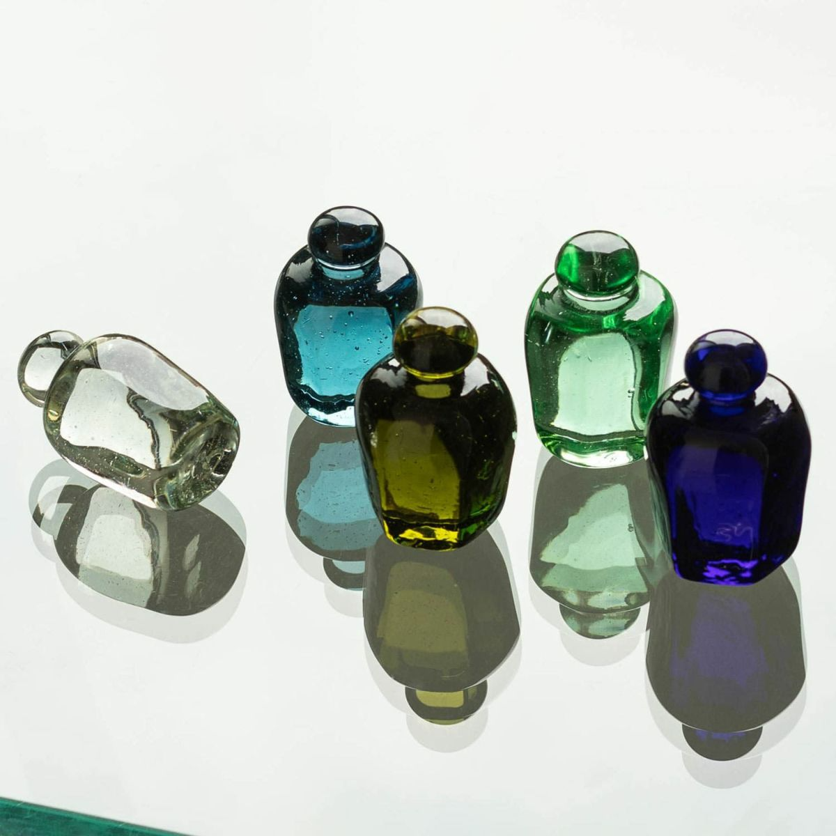 由於它們都是手工製作的,所以每一個都有不同的表情,並且具有再生玻璃的柔和透明度和柔和圓潤的形狀。