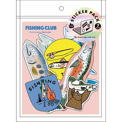 ⎪厭世文具⎪日本Greeting Life CHIC_OKATAOKA_熊抓魚 7入防水貼紙包