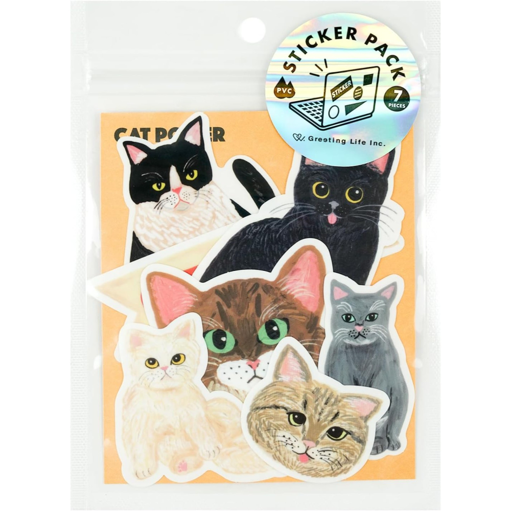⎪厭世文具⎪日本Greeting Life 袖山嘉穗子_貓咪7入防水貼紙包