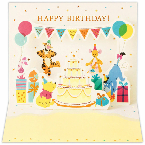 描繪了小熊維尼和他的朋友們圍坐在蛋糕旁的場景。