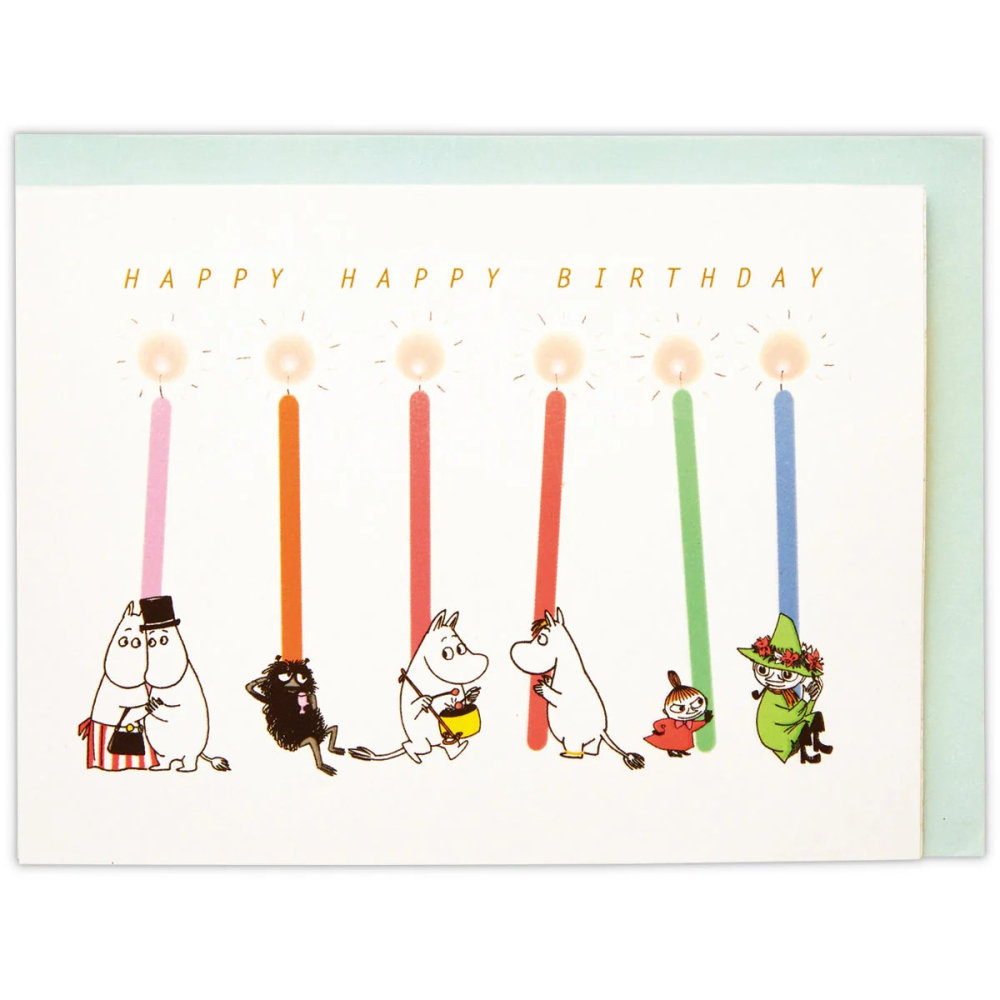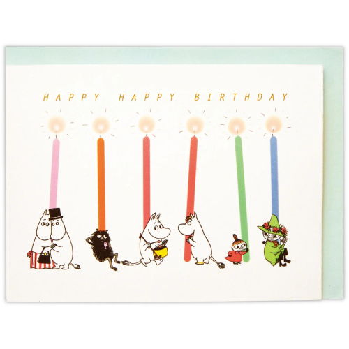 五彩繽紛的蠟燭和看起來幸福的姆明們將營造出一種特別的生日氣氛。