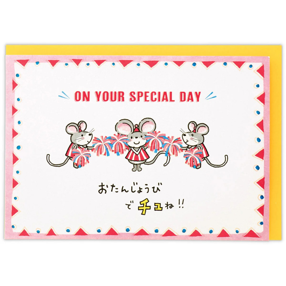 可愛老鼠啦啦隊齊聚一堂!這是一張影響力很大的生日卡片。