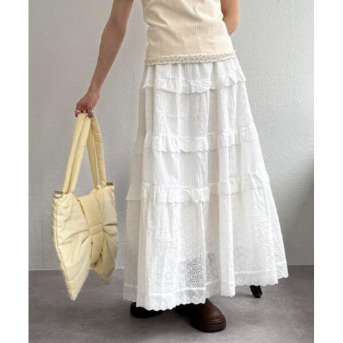 【現貨】自留 日系選品💕w closet日單 日系 純棉 多種花邊蕾絲拼接百搭飄逸鬆緊腰蛋糕裙 長裙