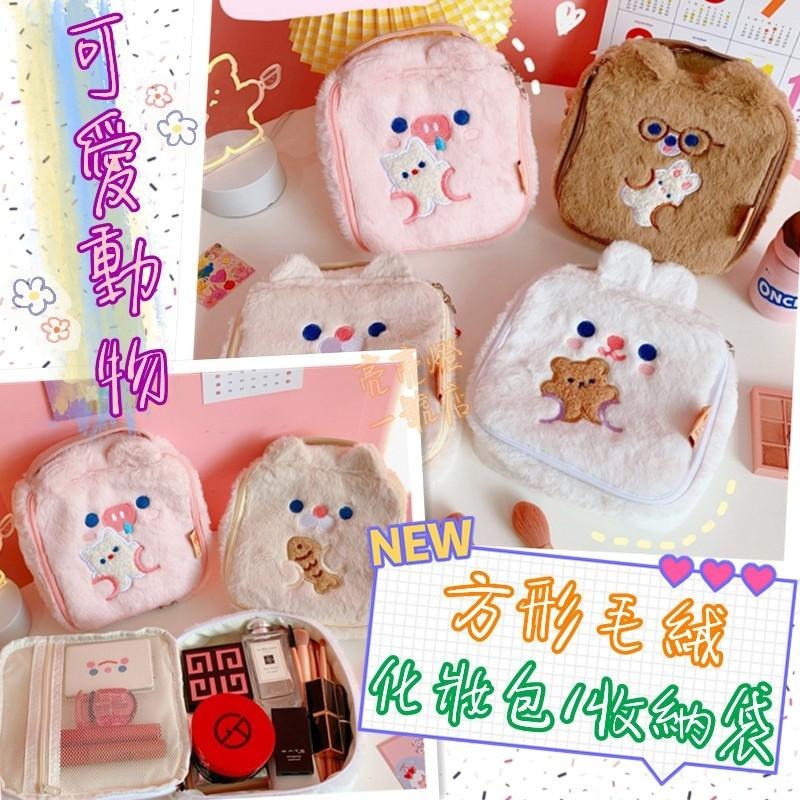 ✨台灣現貨 可愛動物方形毛絨化妝包/收納袋 萬用收納包 大容量方形化妝包 整理包 萬用包 整理包 洗漱包 旅行分裝包