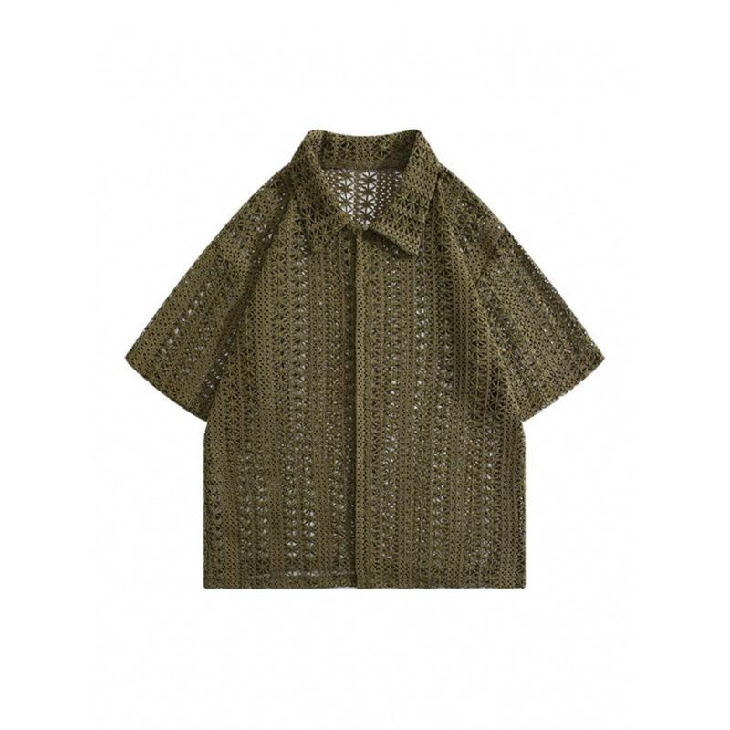 MOLISS|歐美簍空襯衫 夏威夷襯衫 度假襯衫 海灘襯衫 短袖襯衫 透氣襯衫 男生襯衫 韓國男裝 男生上衣 男生衣服