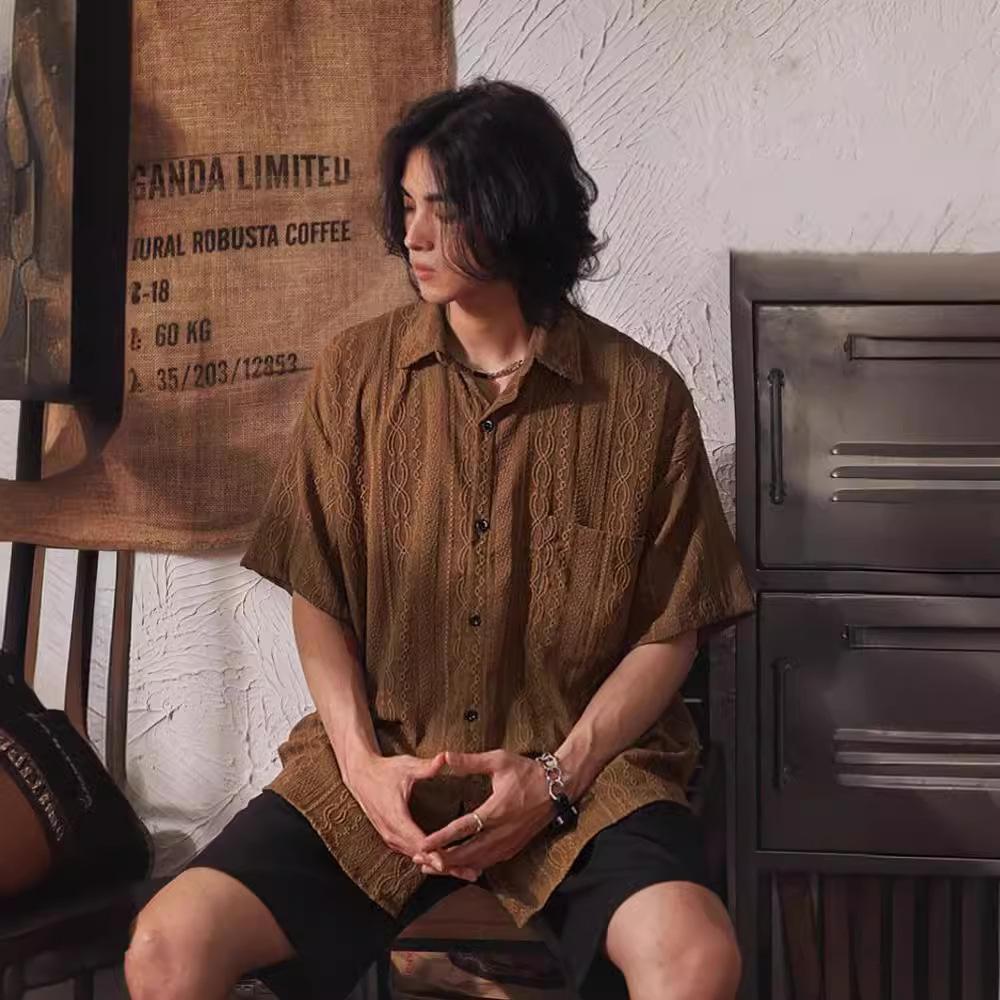MOLISS|歐美卷麻花襯衫 男生襯衫 短袖襯衫 度假襯衫 海灘襯衫 韓國男裝 男生上衣 男生衣服 日本襯衫 古著風格