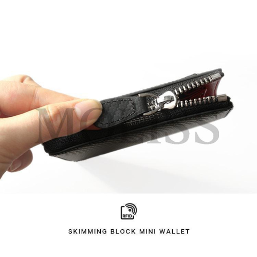 MOLISS|RFID 紳紳真皮零錢包 防盜刷碳纖維 快取外卡層 防掉掛鉤 汽車鑰匙 鑰匙包 悠遊卡 皮包 皮夾 錢包