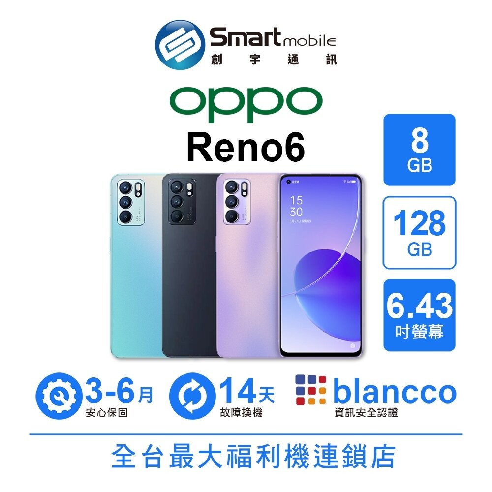 OPPO Reno6 8G/128G 6.43吋 (5G) 二手機 中古機 福利品 創宇通訊