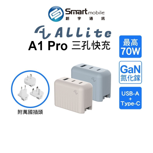 商品名稱:ALLite 70W GaN氮化鎵 2C/1A三孔輸出快充充電器