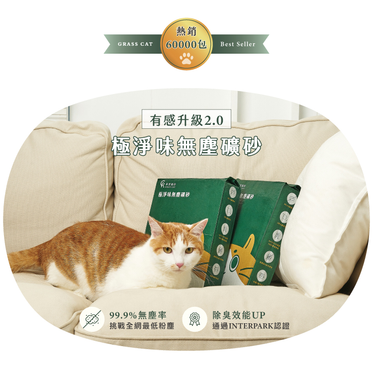 貓砂 礦砂 草恩天然極淨味無塵貓砂4KG 味無塵礦砂