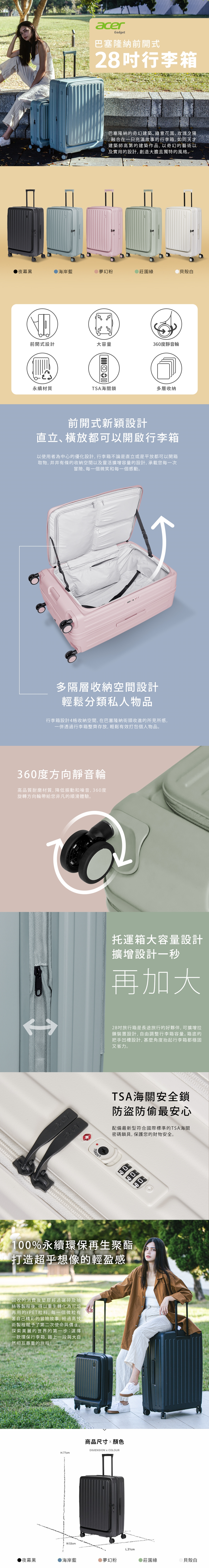【acer 宏碁】 巴塞隆納前開式機長箱 28吋- 加贈三樣好禮