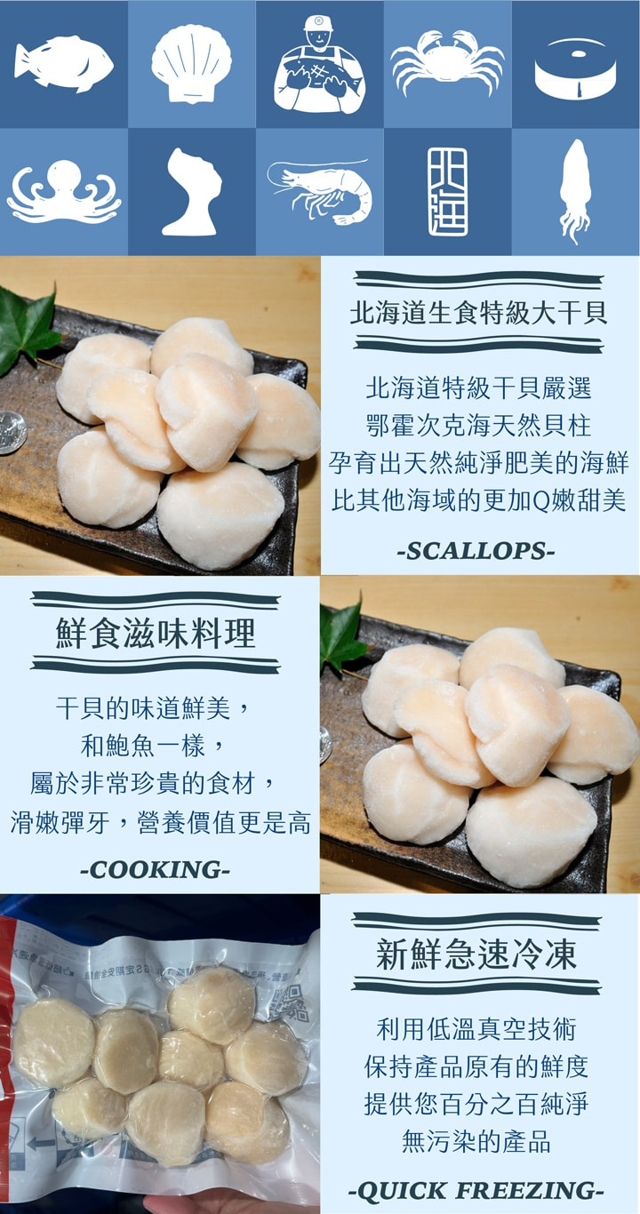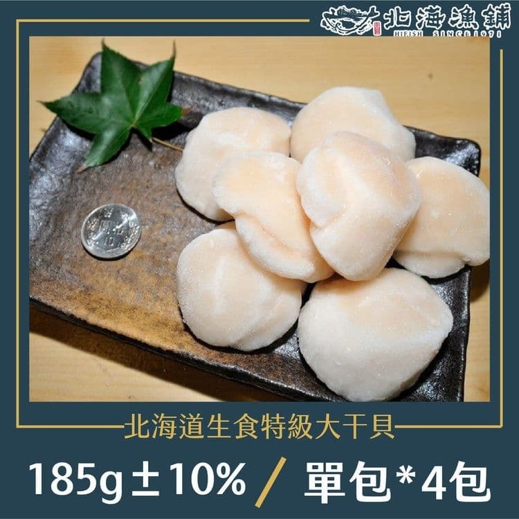 1.商品品名:【北海漁鋪】北海道生食特級大干貝(185g±10%/包)*4包