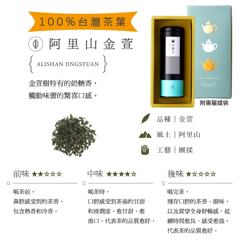 【Jing Sheng Yu 京盛宇】心願禮盒|阿里山金萱100g罐裝茶葉(100%台灣茶葉/附提袋)