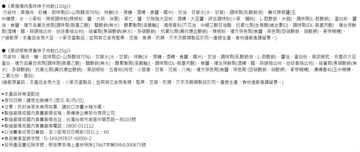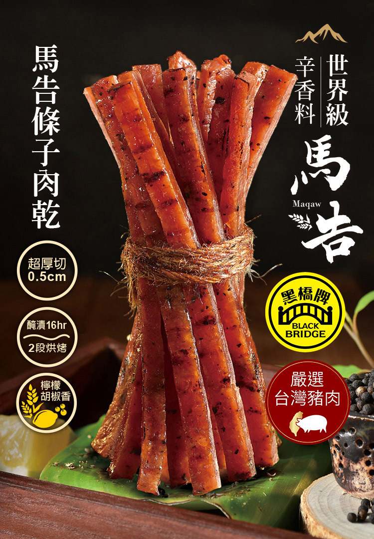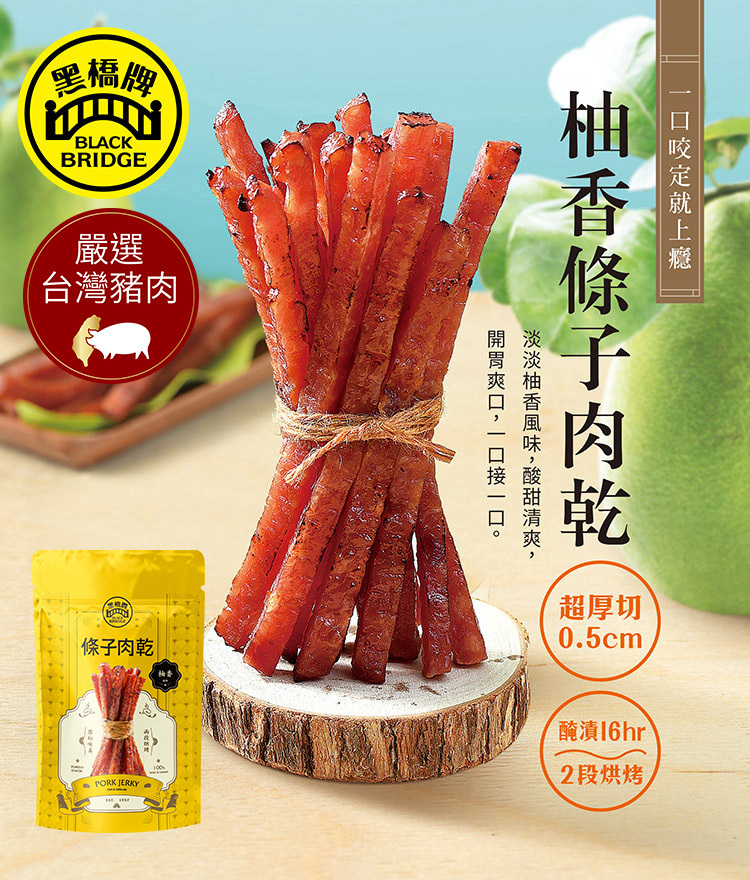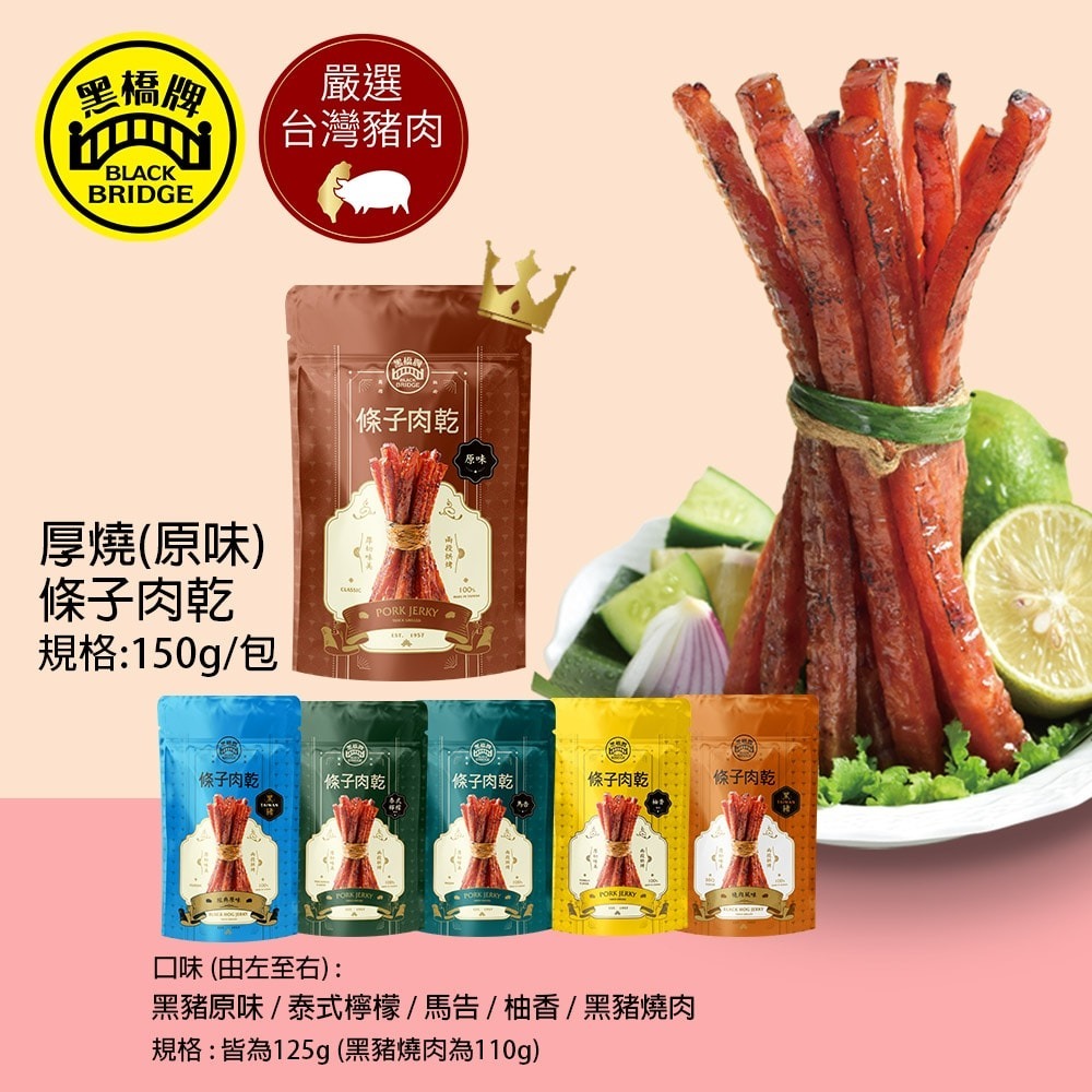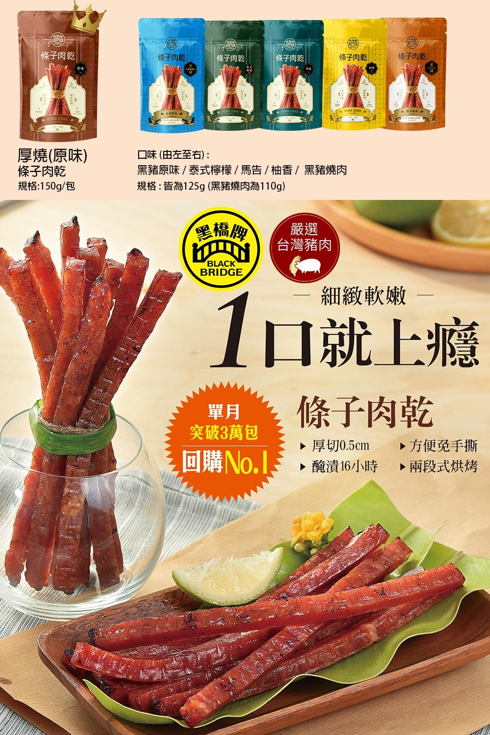 【黑橋牌】超人氣條子肉乾3件組(厚燒/泰式檸檬/黑豬/黑豬燒肉/馬告/柚香)