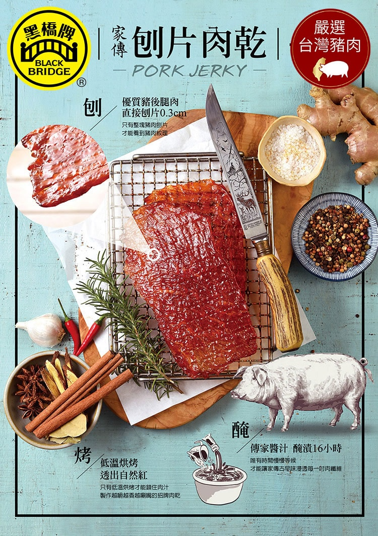 ◆商品規格:【黑橋牌】經典原味豬肉乾,3件組(240公克大包裝/台灣豬肉)
