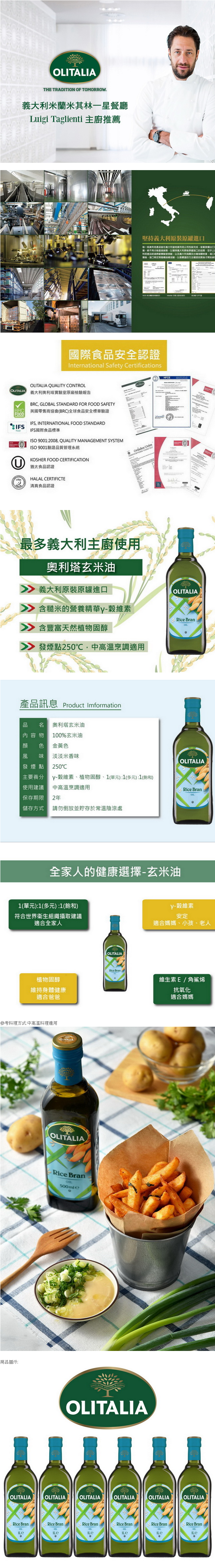 1.商品品名:【Olitalia 奧利塔】超值玄米油禮盒組(1000mlx6瓶)