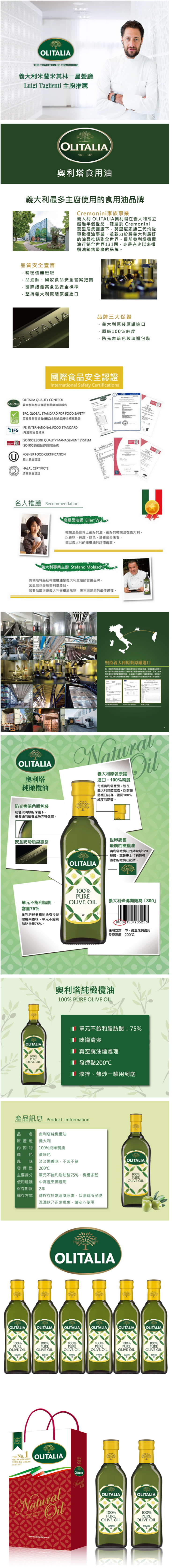 1.商品品名:【Olitalia 奧利塔】超值純橄欖油禮盒組(500ml x 6瓶)