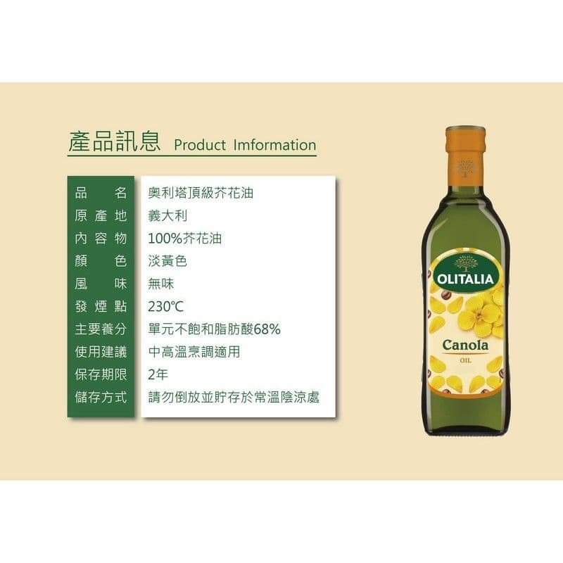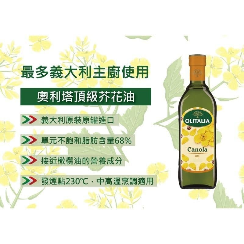 本組內容 : Olitalia奧利塔頂級芥花油(500ml x 6瓶)