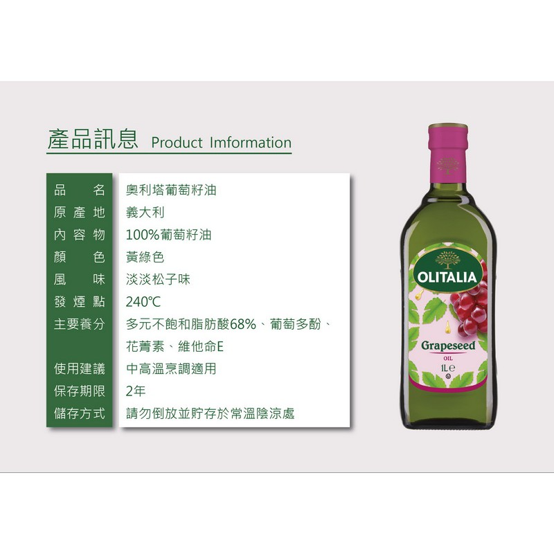 Olitalia奧利塔葡萄籽油1000mlx2瓶