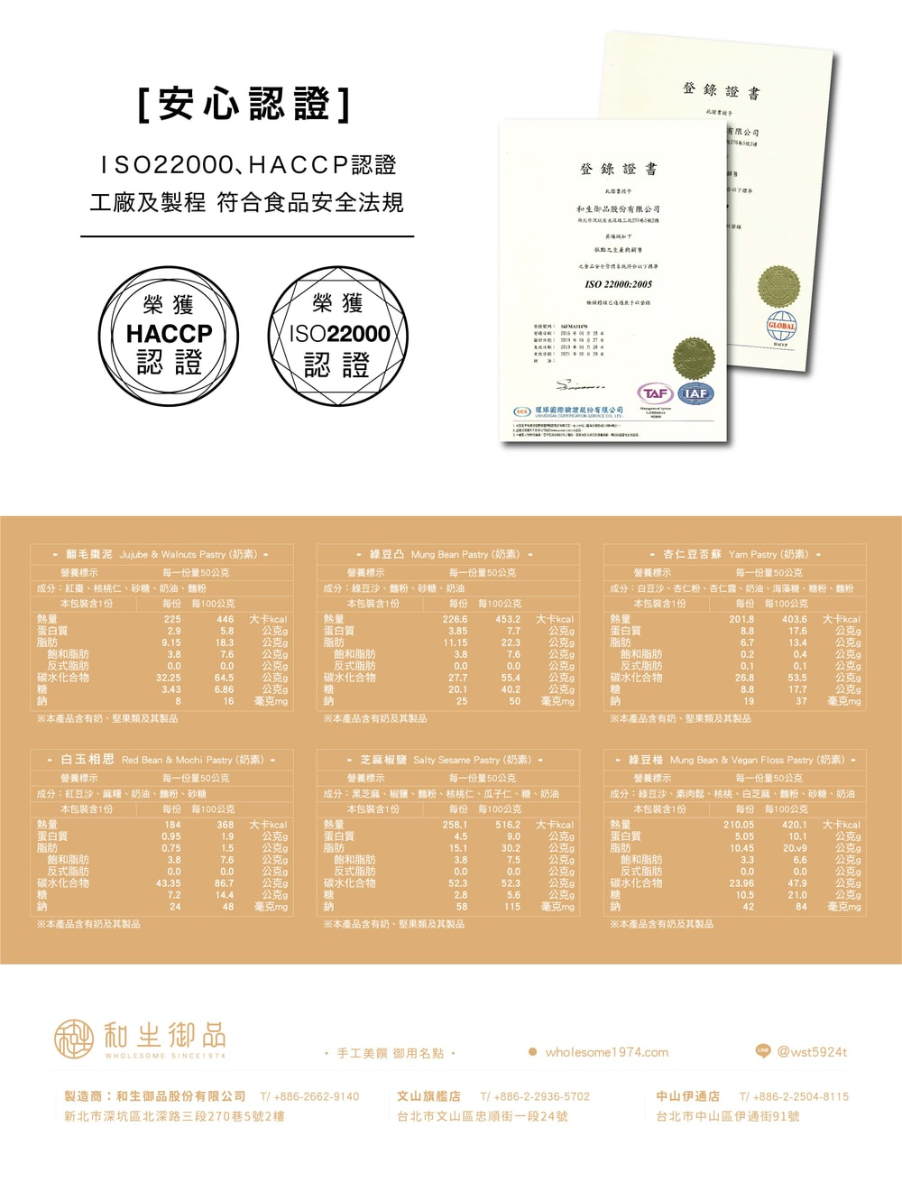 4.內容物成分(如含有豬、牛成分請加註國別):芝麻、核桃、南瓜子、花椒、紅棗、核桃仁、砂糖、奶油、糖粉、黑芝麻、椒鹽、麵粉、奶油、水、瓜子仁、綠豆沙、麻糬、紅豆沙、素肉鬆、白豆沙、杏仁露、杏仁粉、海藻糖、乾酪、白油、乳酪粉、煉乳