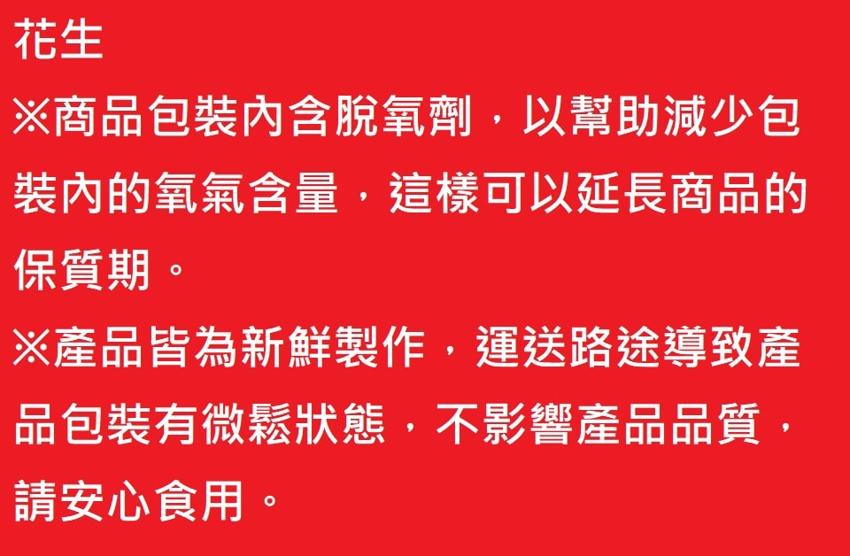 過敏原標示:本產品含有花生,對其過敏體質者請慎重考慮食用