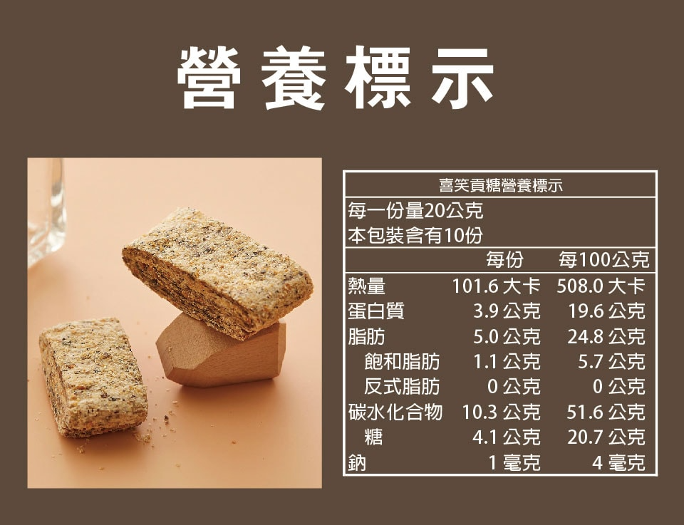 過敏源資訊:本產品含有花生、小麥,不適合對其過敏體質者食用