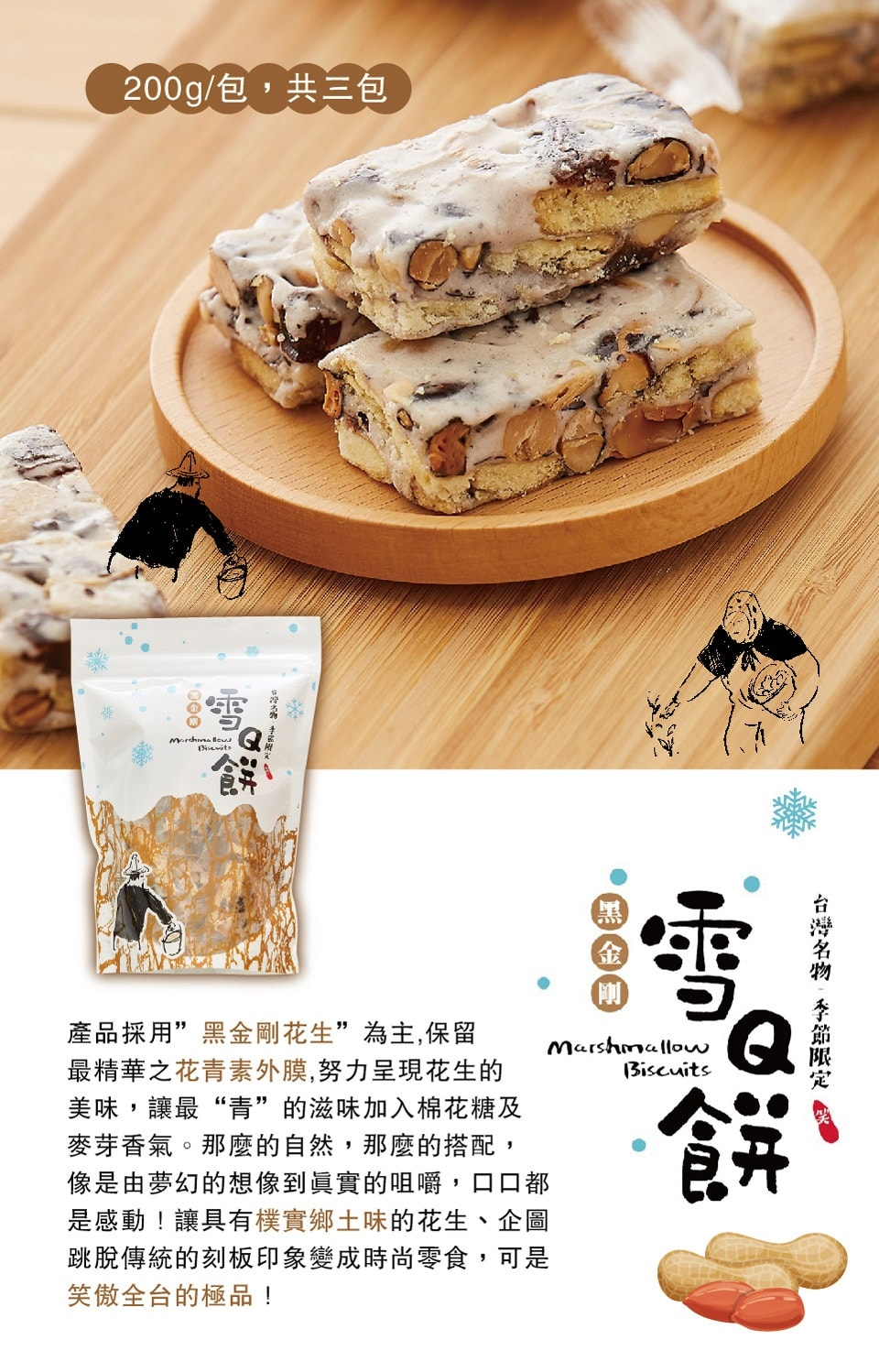 商品:《喜笑花生》喜笑雪Q餅(每包200g,共三包)