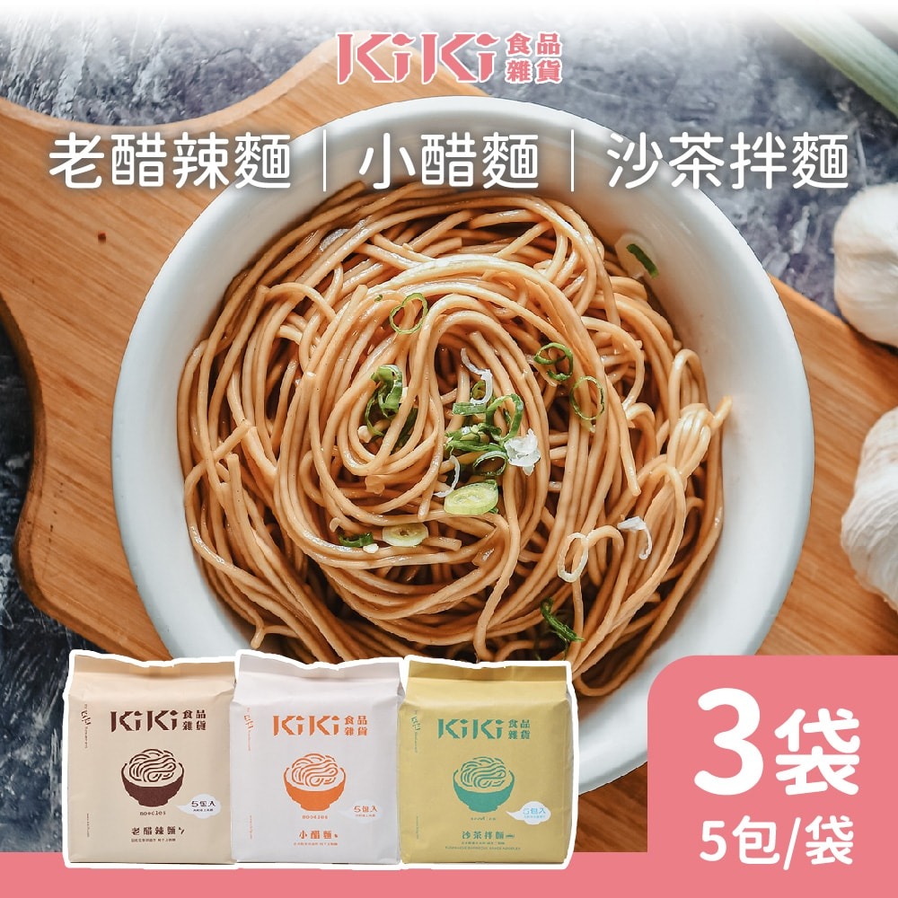 1.商品品名:【KIKI食品雜貨】小醋/老醋/沙茶 拌麵系列 任選3袋 (90gx5包/袋)