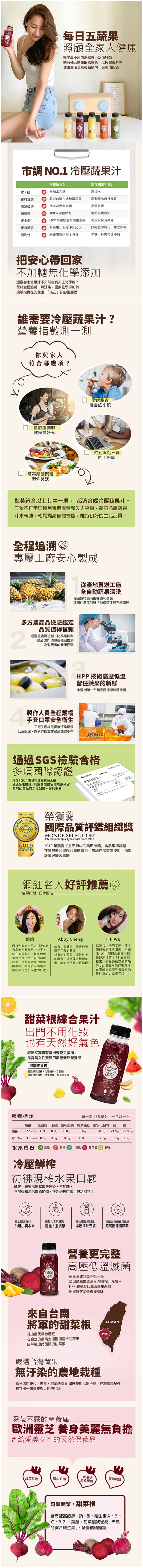1.商品品名:【純在】冷壓鮮榨甜菜根綜合果汁3瓶(960ml/瓶)