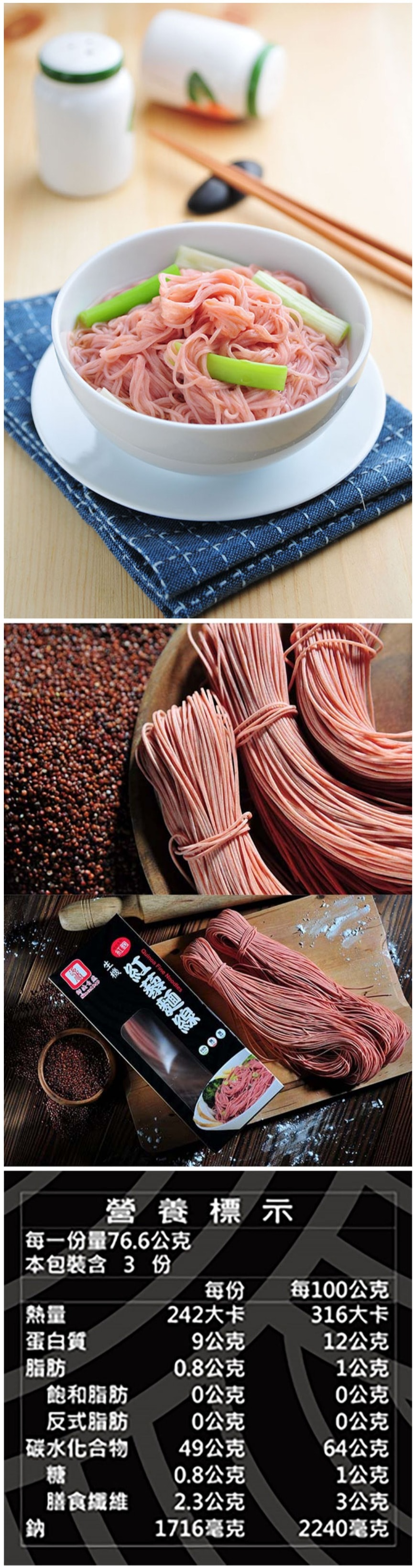 1.商品品名:【源順】生機紅藜麵線 (230公克×三盒)