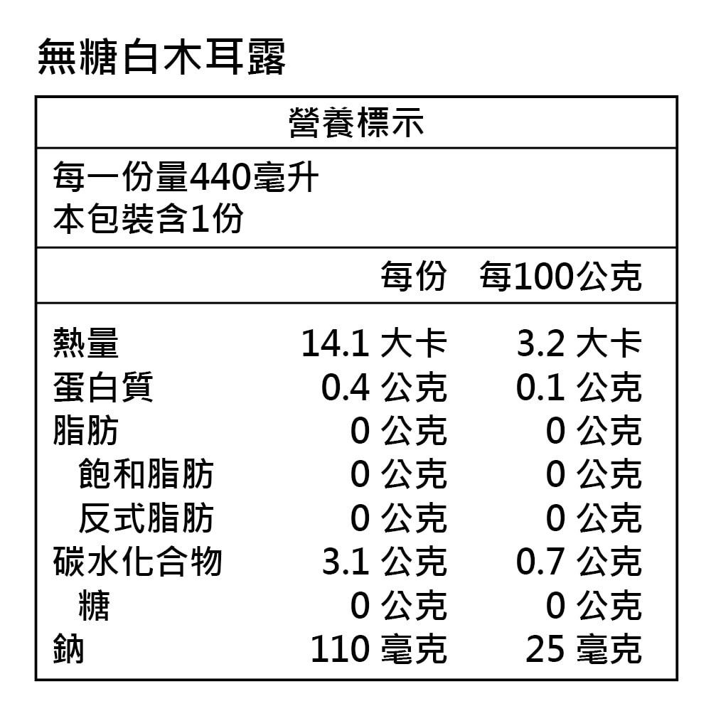 內容物成分(全展開)成分有豬及牛的需於背後標註產地:水、白木耳(台灣)、異抗壞血酸鈉(抗氧化劑)