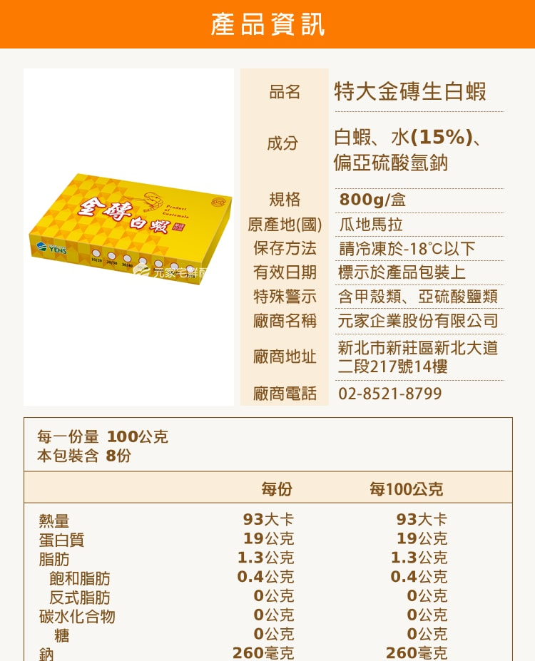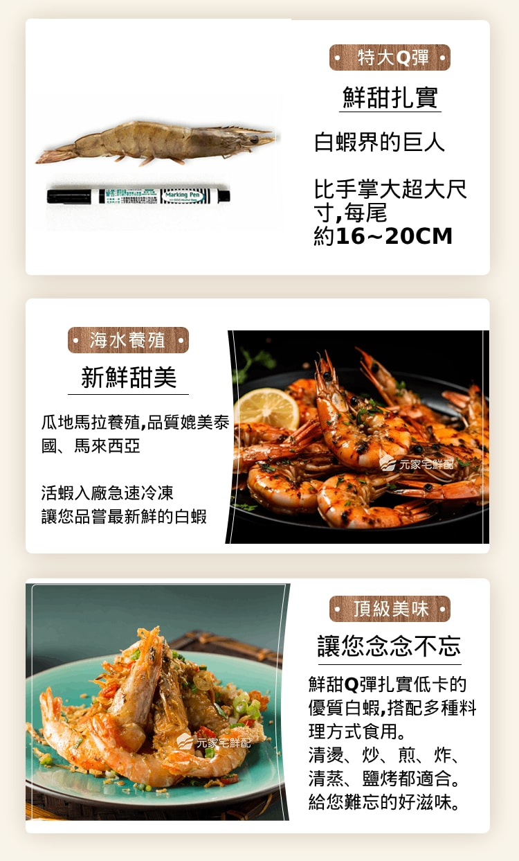 1.品名:特大鮮甜白蝦 2盒組 (800g±10%/盒 約8-16尾)