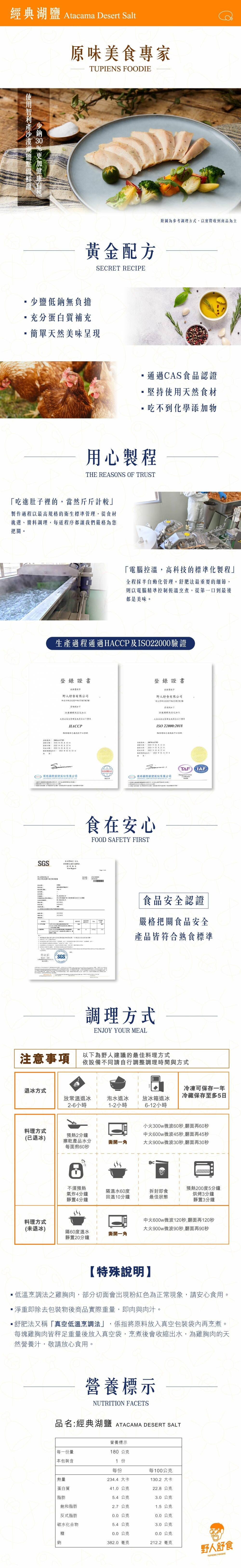 1.商品品名:【野人舒食】180g舒肥雞胸-經典湖鹽6包組